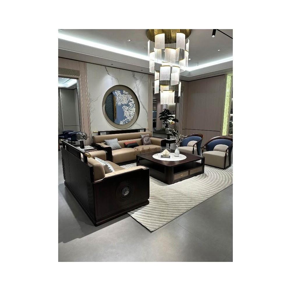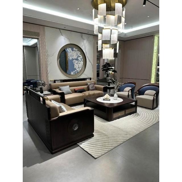 新中式實木沙發烏金木官帽自建房大戶型客廳現代輕奢高端真皮家具 b20
