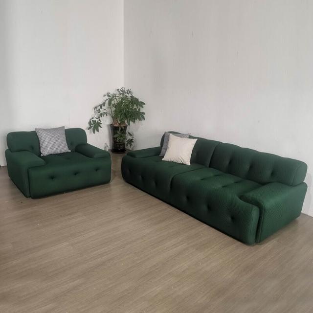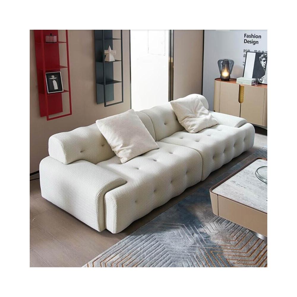 意式輕奢布藝沙發羅奇堡小戶型客廳簡約拉扣設計師直排三人位沙發 ada