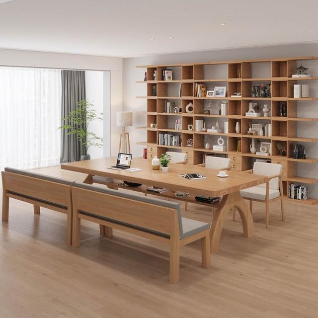 北歐實木書桌客廳休閑區洽談會議桌沙發多人學習桌公司原木辦公桌 bf9