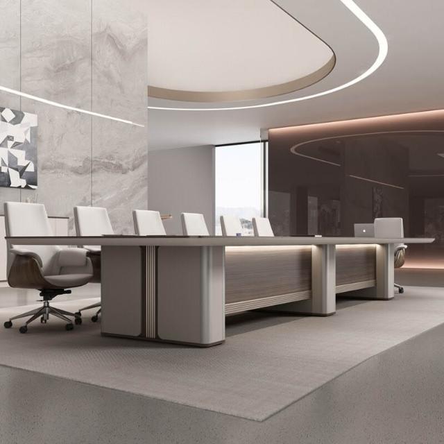 辦公室會議桌椅組合簡約現代大型會客洽談長方形條桌子職員工作臺 068