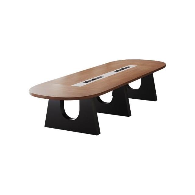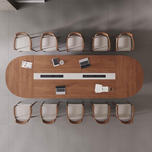 現代視覺橢圓形實木10人會議桌椅組合長條洽談桌輕奢高級感大型 a03