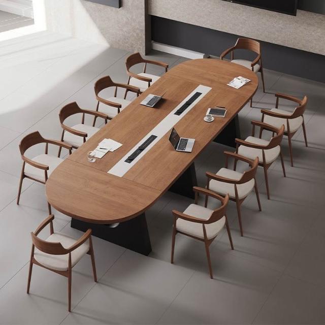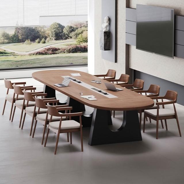 現代視覺橢圓形實木10人會議桌椅組合長條洽談桌輕奢高級感大型 a03