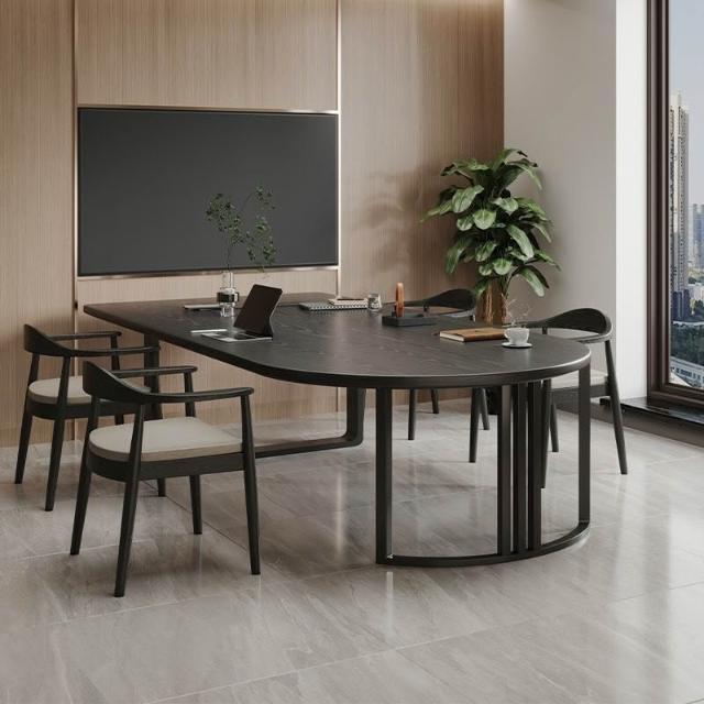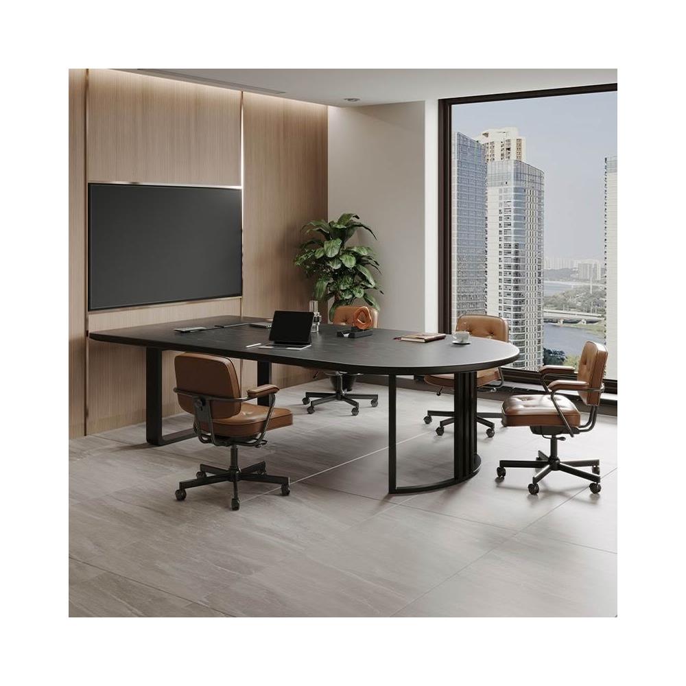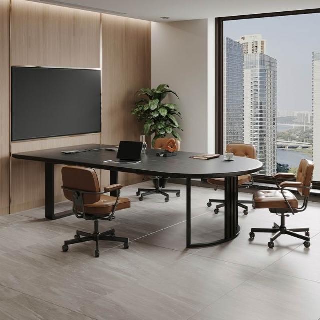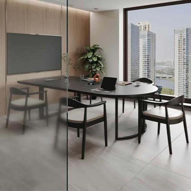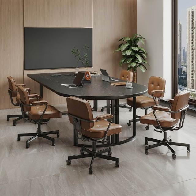 新款實木圓頭洽談會議桌椅組合簡約辦公室接待桌輕奢高級感2025新 ada
