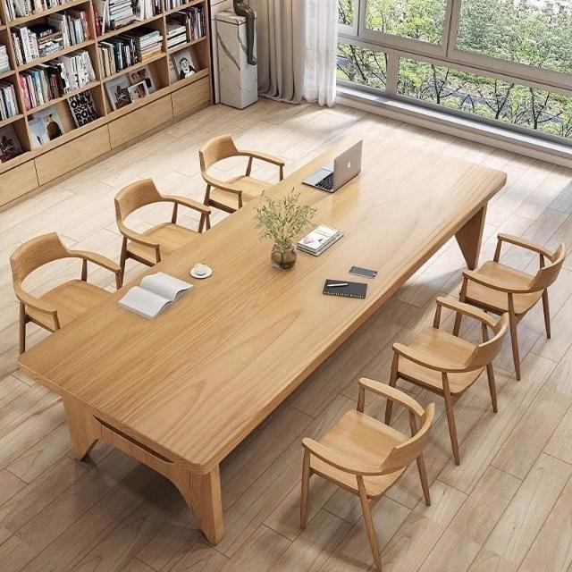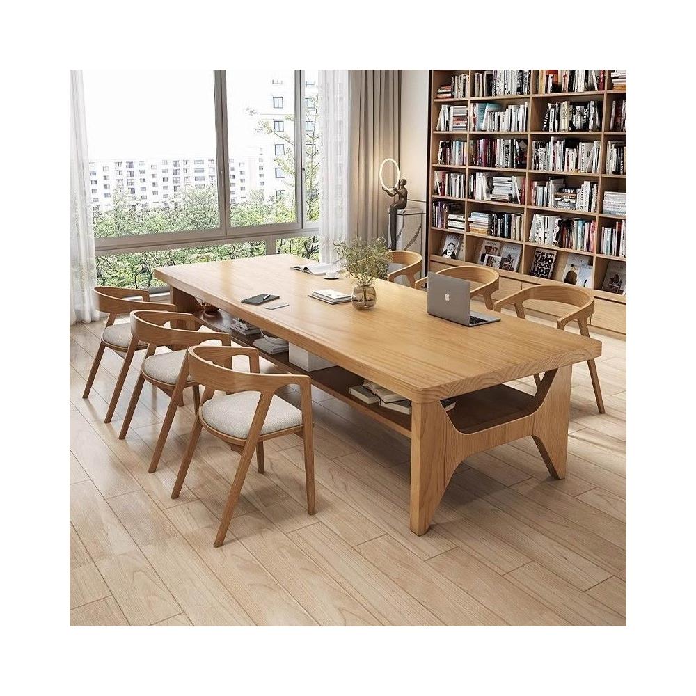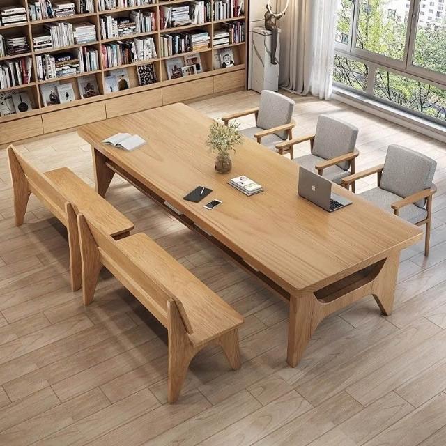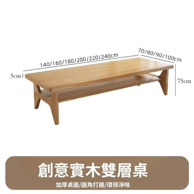 客廳實木雙層書桌輕奢長方形辦公桌會議桌長桌家用書房簡約工作臺 285