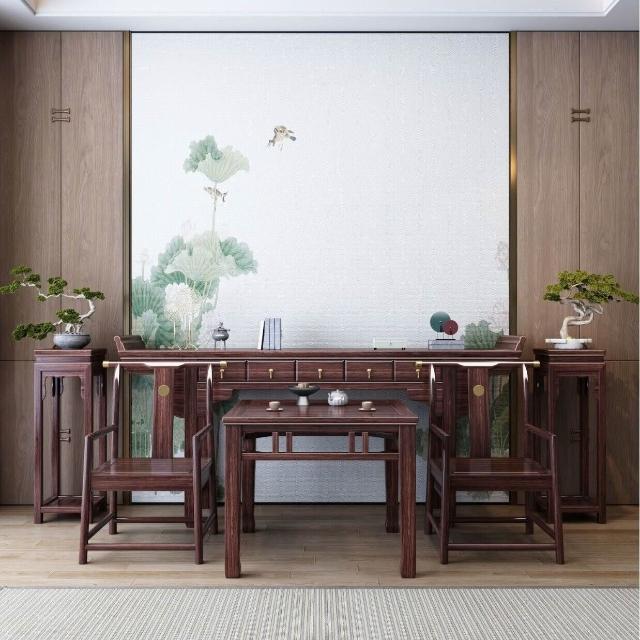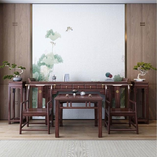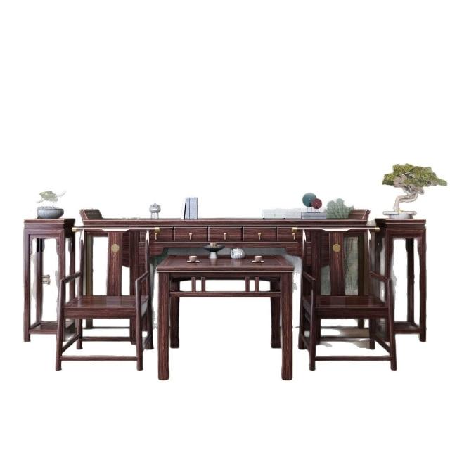 實木桌新中式全實木中堂六件套榫卯條案臺桌八仙桌條凳神臺 77b
