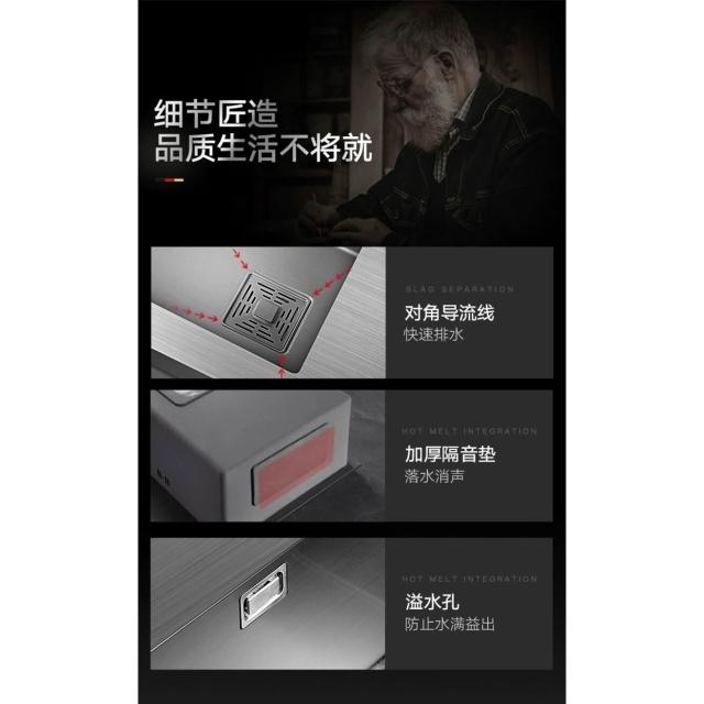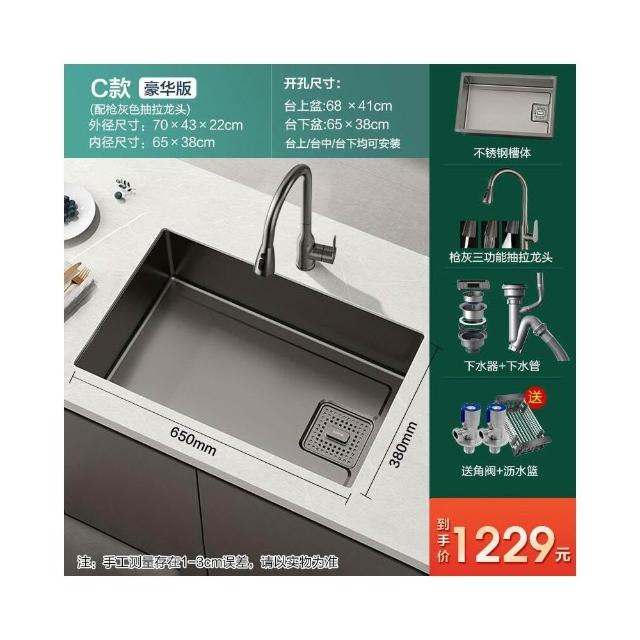 槍灰色納米水槽單槽不銹鋼臺下盆洗菜盆洗碗槽廚房家用臺控窄邊槽 3