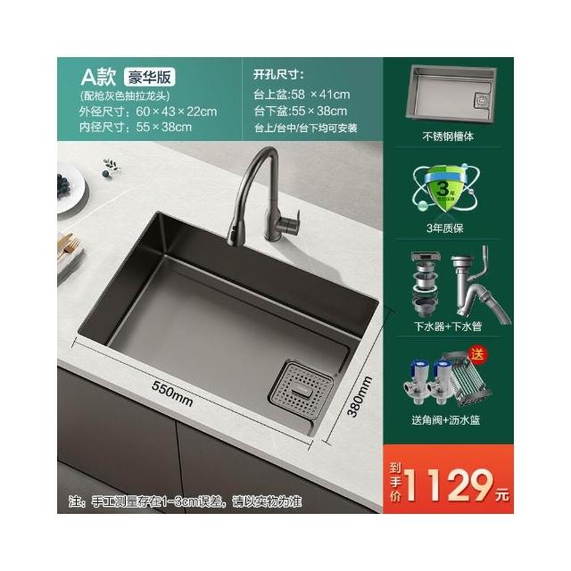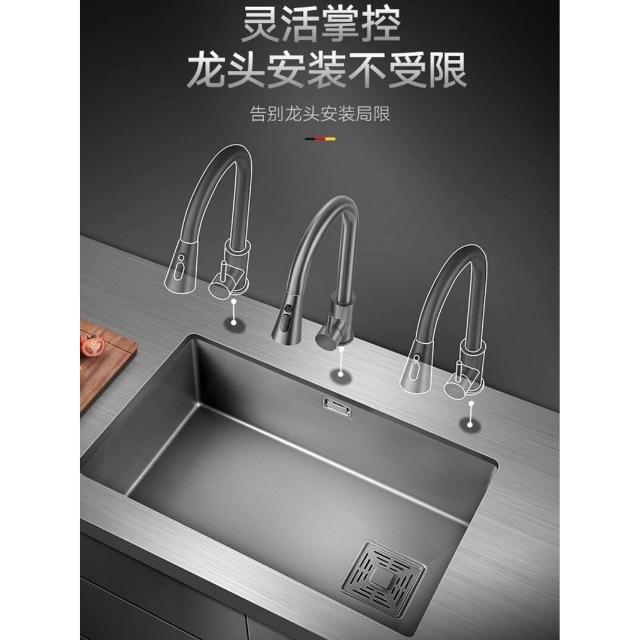 槍灰色納米水槽單槽不銹鋼臺下盆洗菜盆洗碗槽廚房家用臺控窄邊槽 3