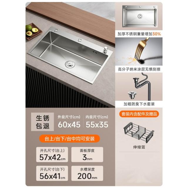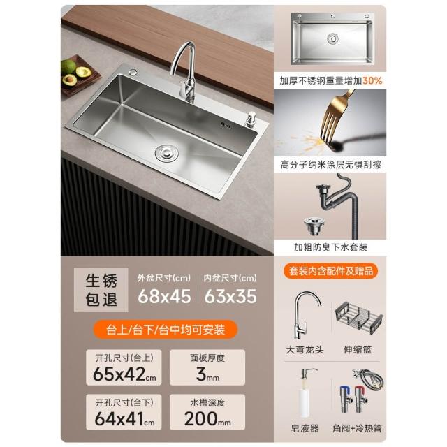 廚房洗菜盆大單槽304不銹鋼水槽臺中下洗碗槽家用加厚洗菜池水池 3