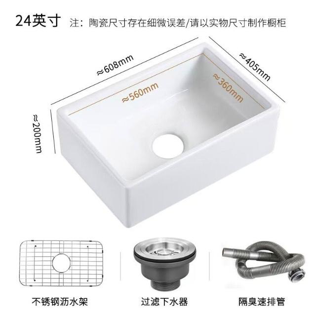 美式陶瓷水槽廚房洗菜盆半嵌入式家用豎紋雙面臺下盆大單槽 3