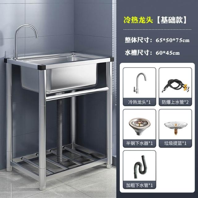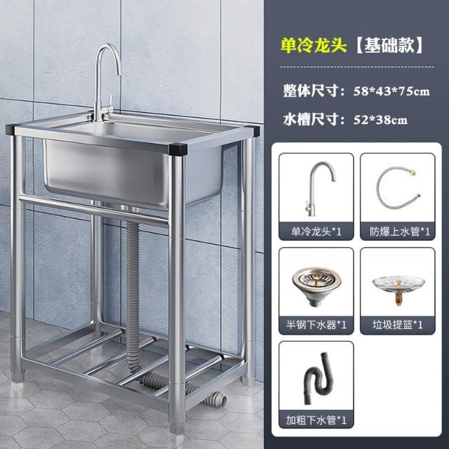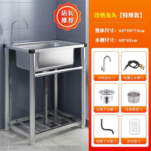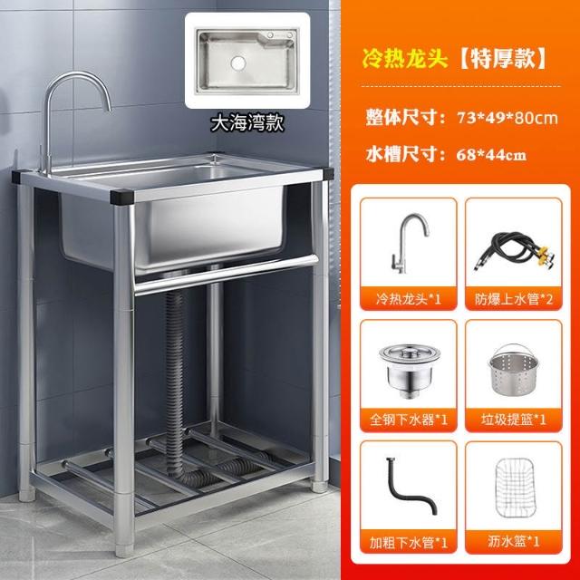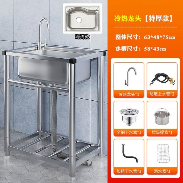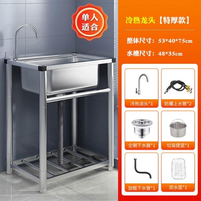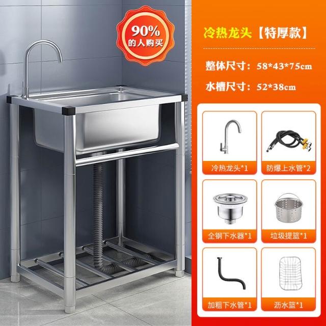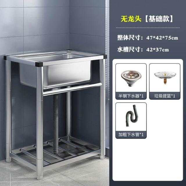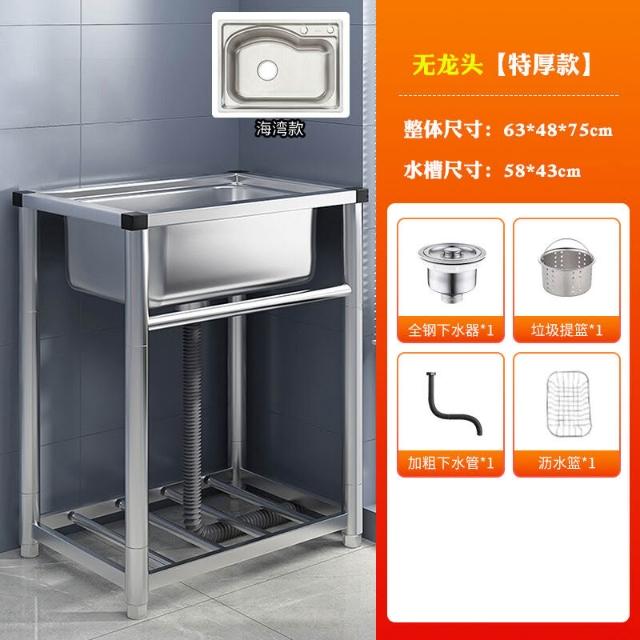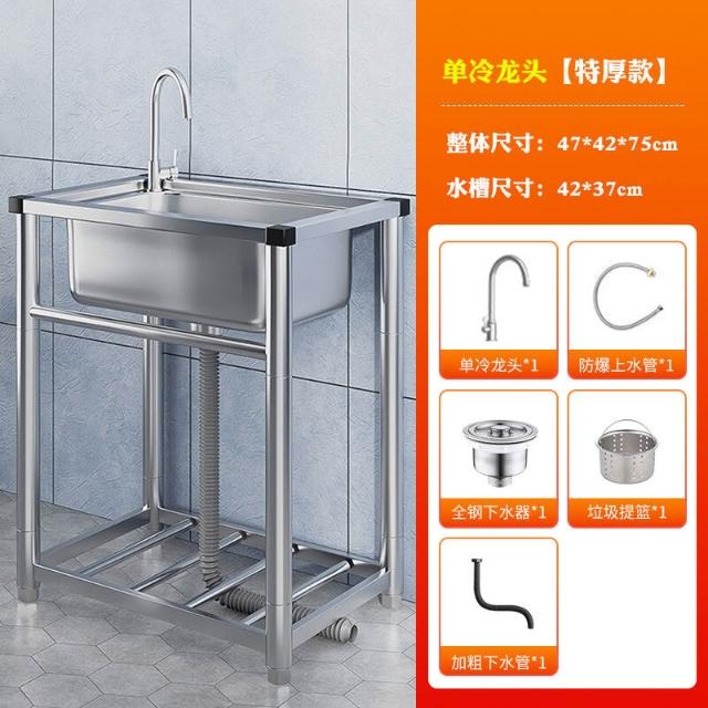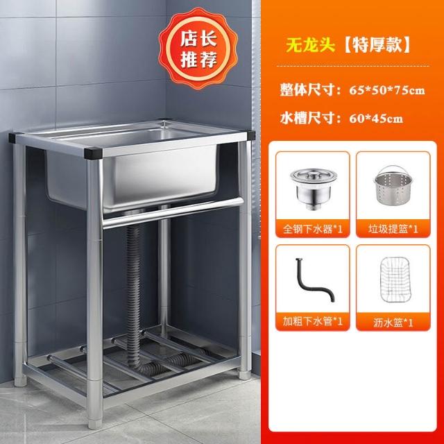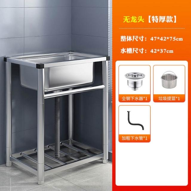 304不銹鋼廚房水槽大單槽帶支架家用洗菜盆加厚水池洗碗槽洗手池 3
