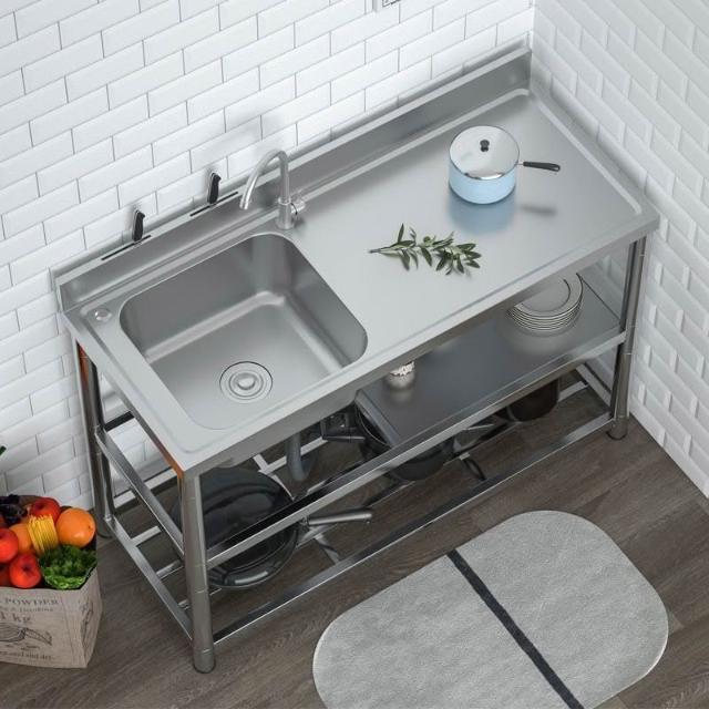不銹鋼洗手盆加厚款洗碗池雙槽廚房家用洗菜池臺面一體帶支架水槽 3