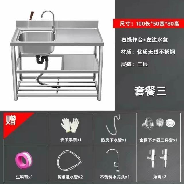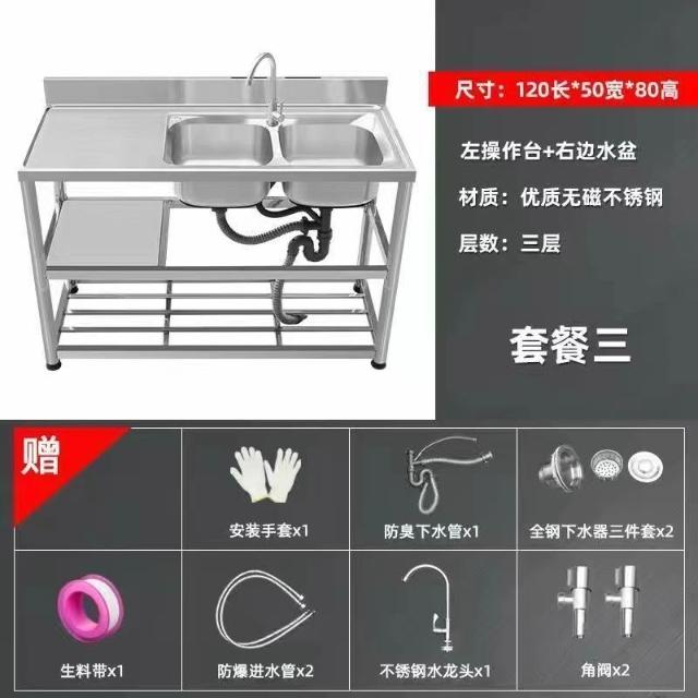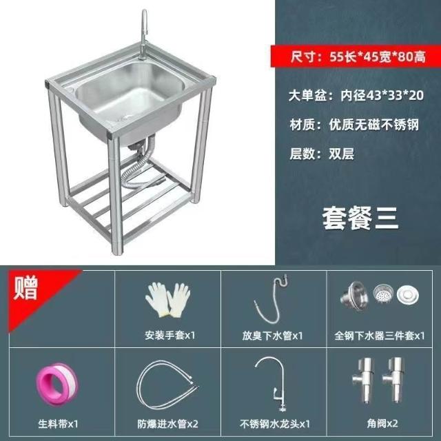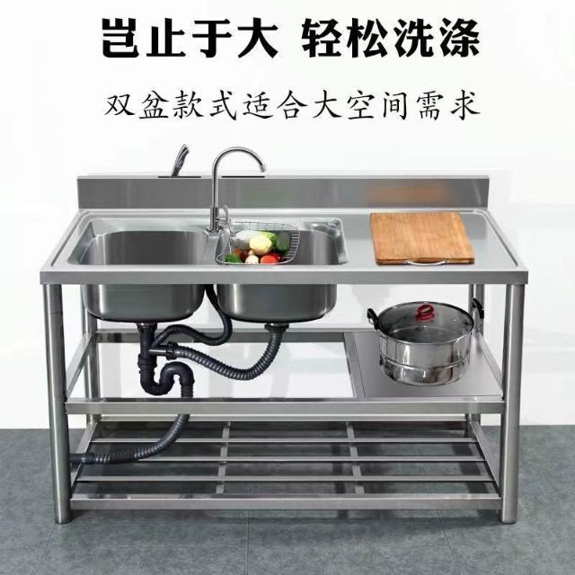 不銹鋼洗手盆加厚款洗碗池雙槽廚房家用洗菜池臺面一體帶支架水槽 3