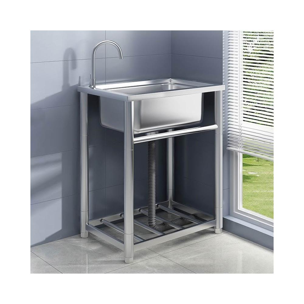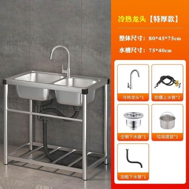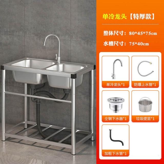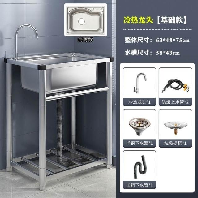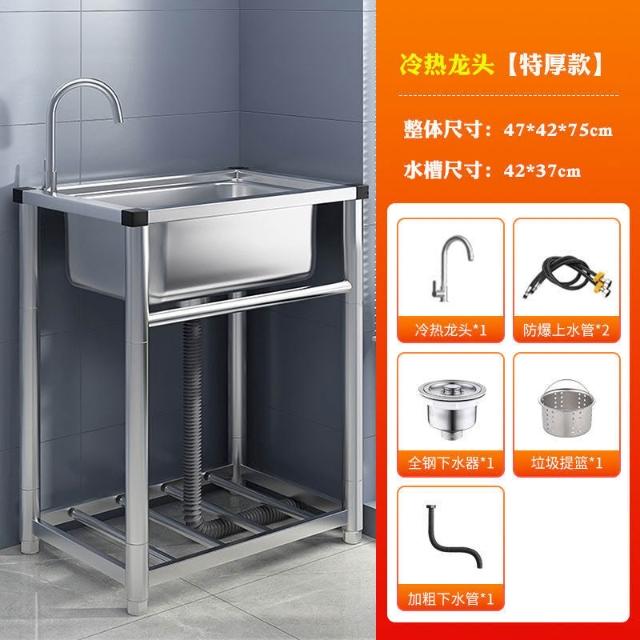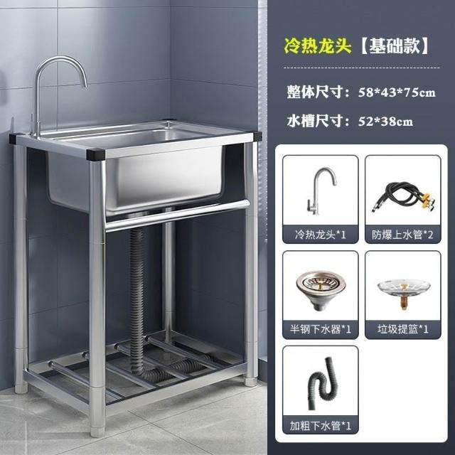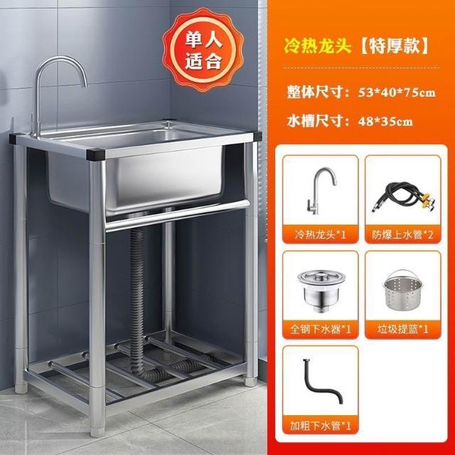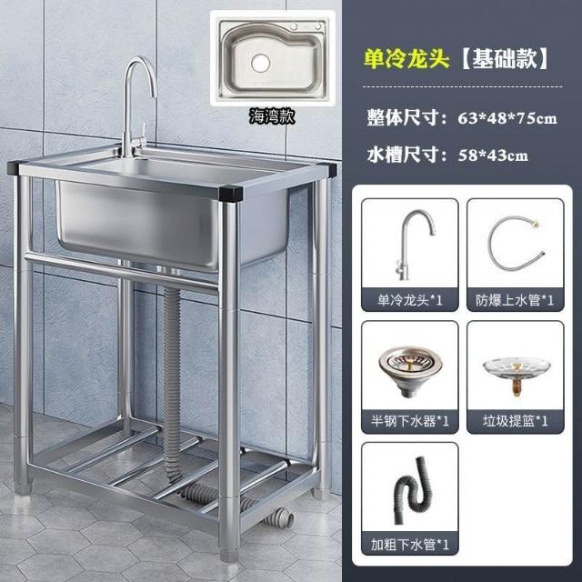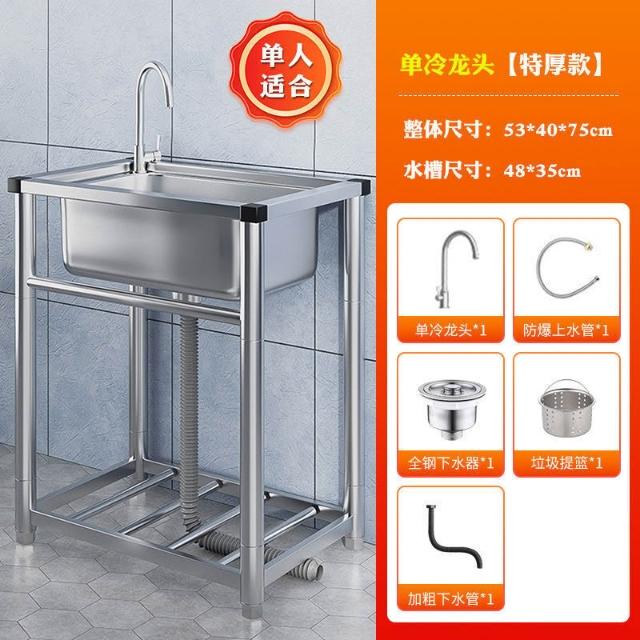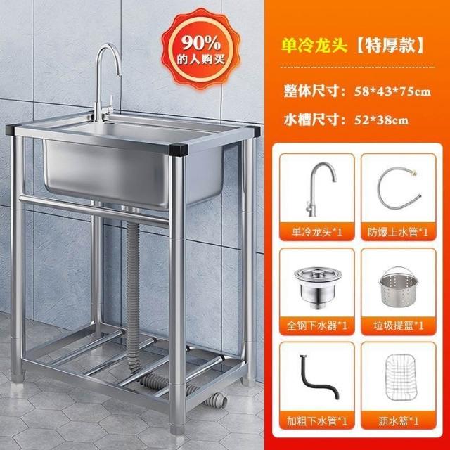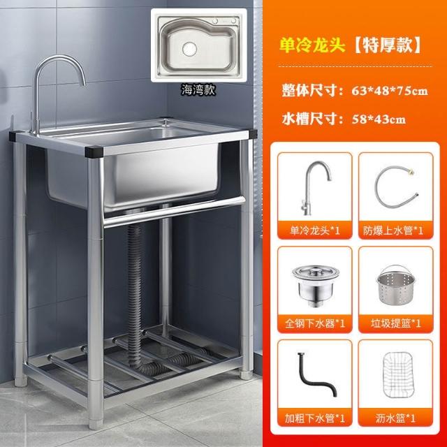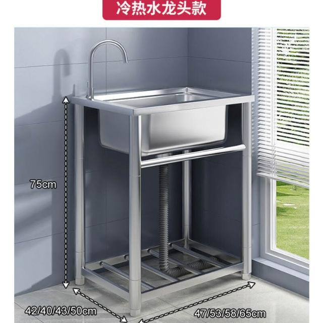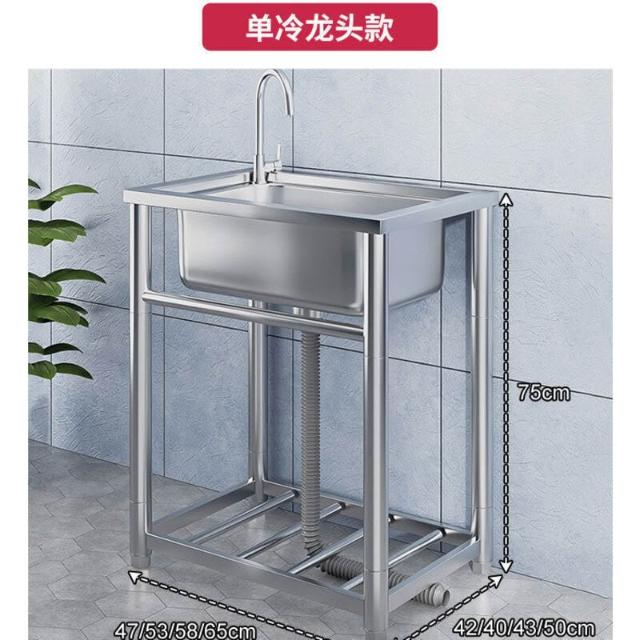 商用廚房洗菜盆不銹鋼洗手盆帶支架一體洗碗池家用水槽大單槽 3