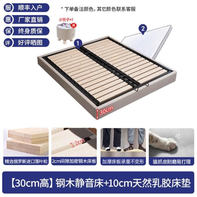 全實木榻榻米鋼木排骨架臥室落地床民宿酒店落地無床頭床架可可L^ 3
