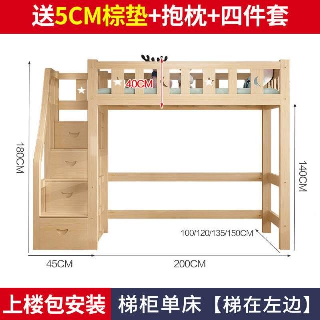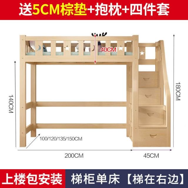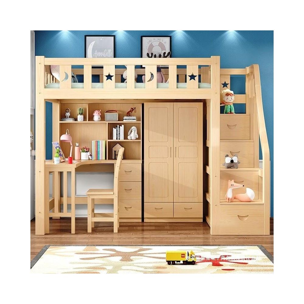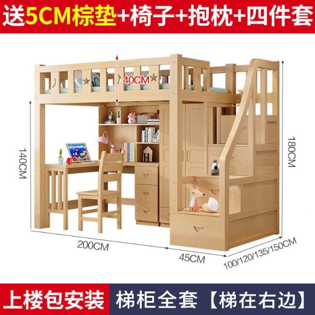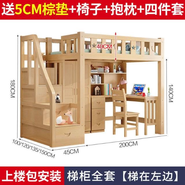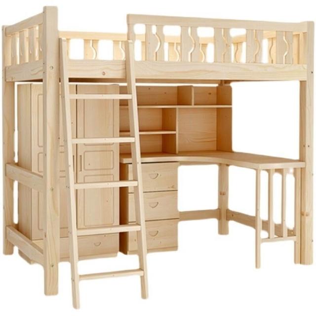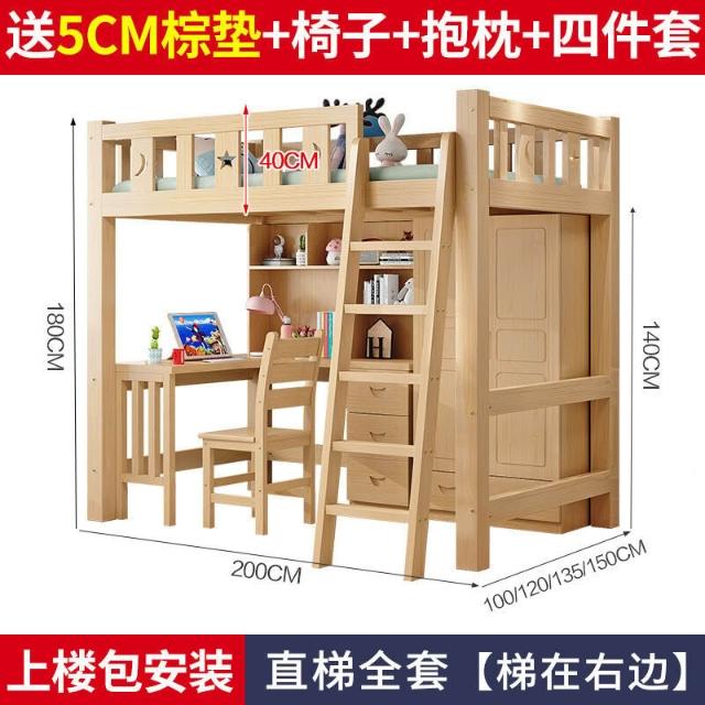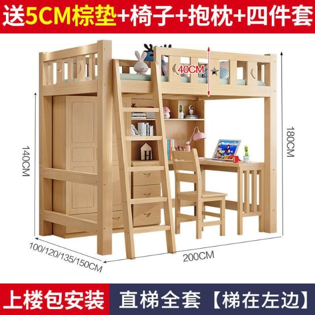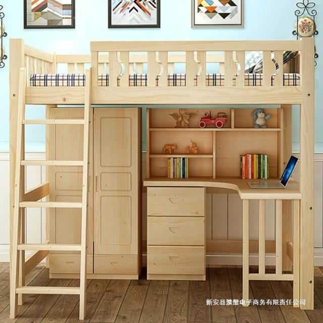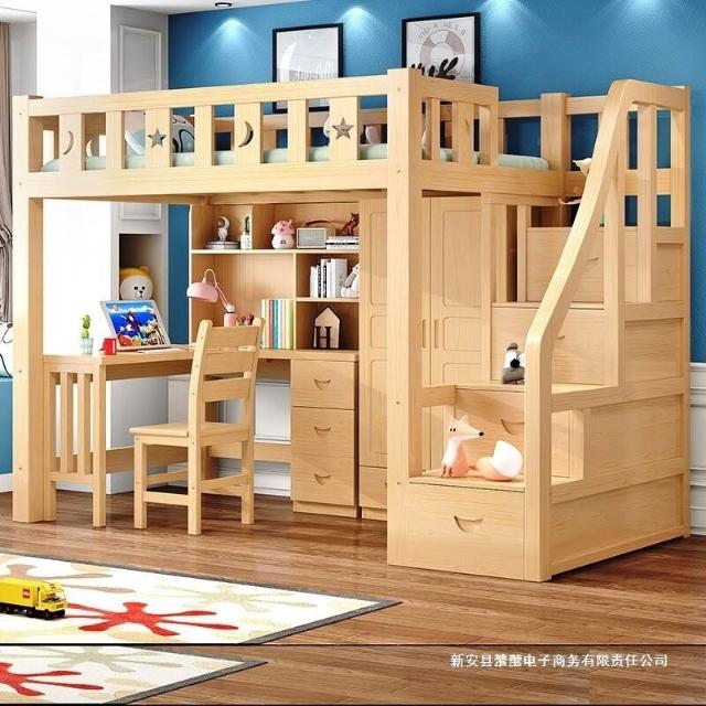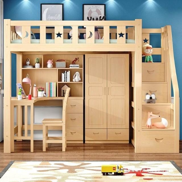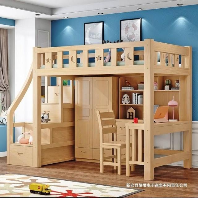 上床下桌高低床多功能組合床家用全實木兒童床書桌衣櫃一體高架床 3