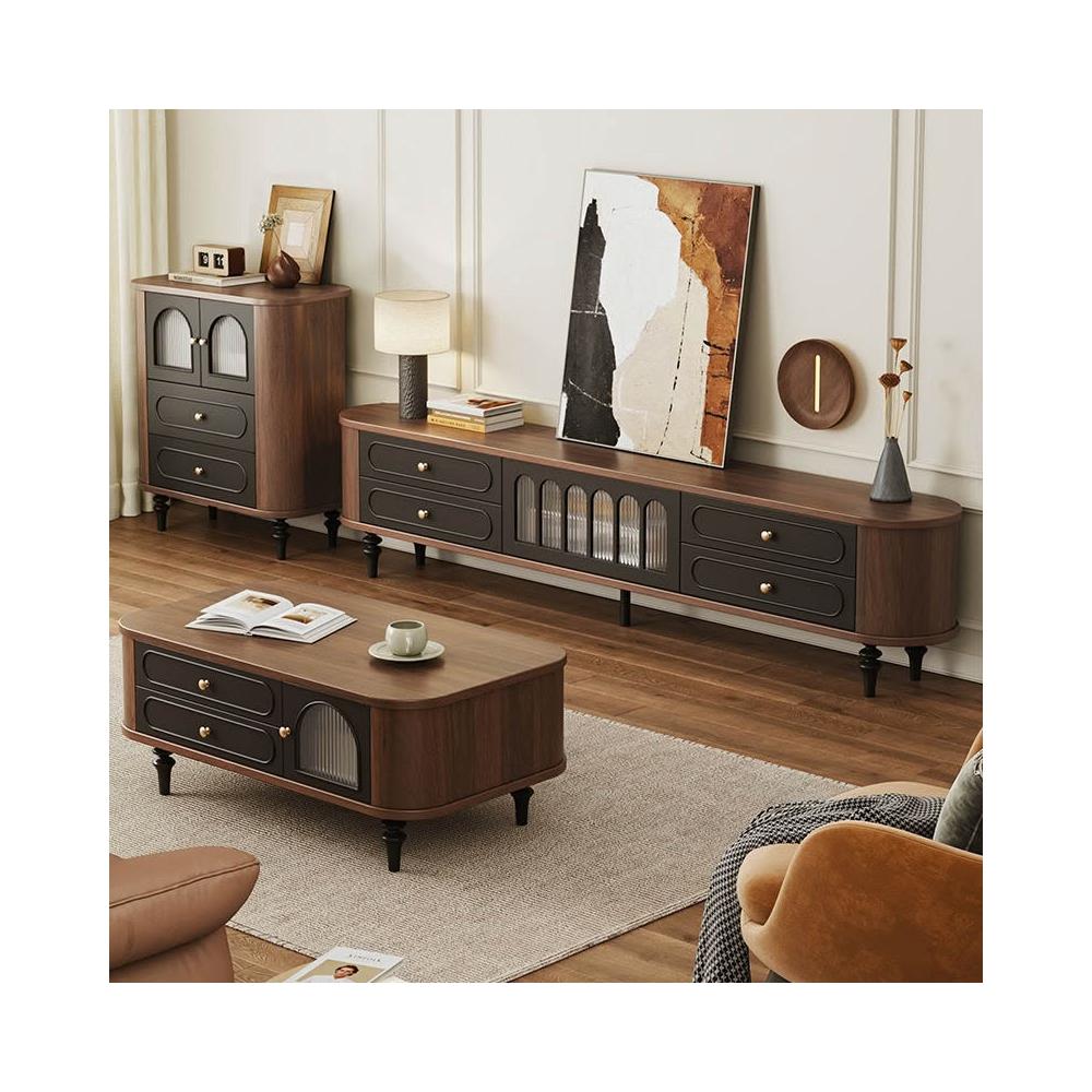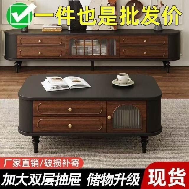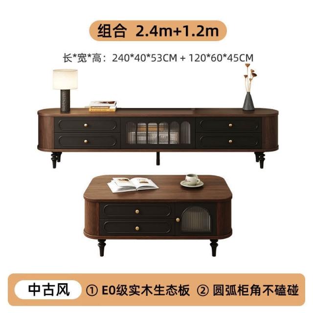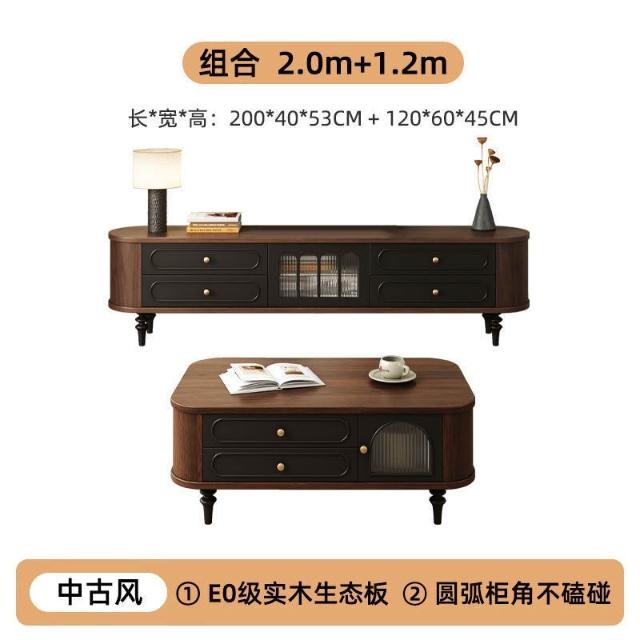 法式電視櫃中古風實木電視機櫃茶幾組合客廳家用2025新款美式 3