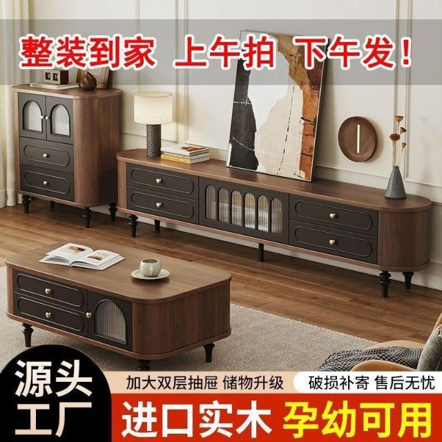 法式電視櫃中古風實木電視機櫃茶幾組合客廳家用2025新款美式 3