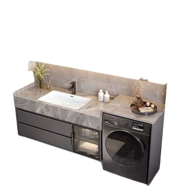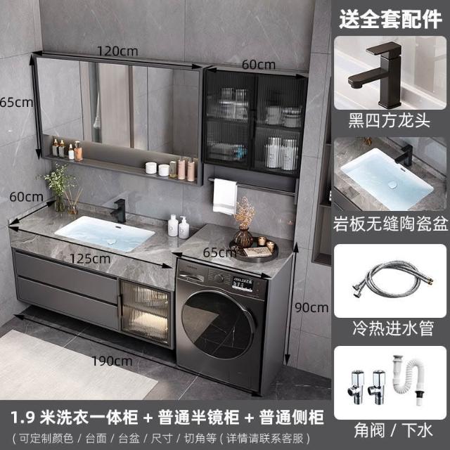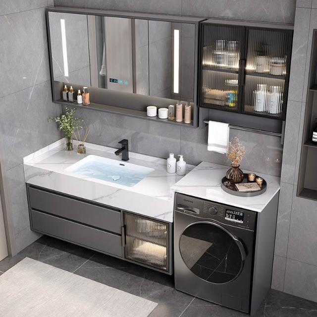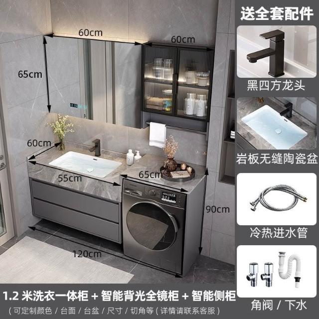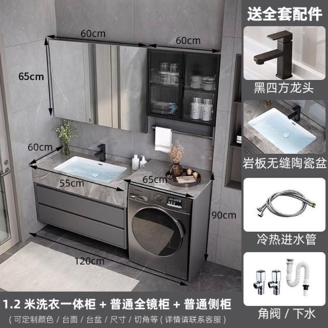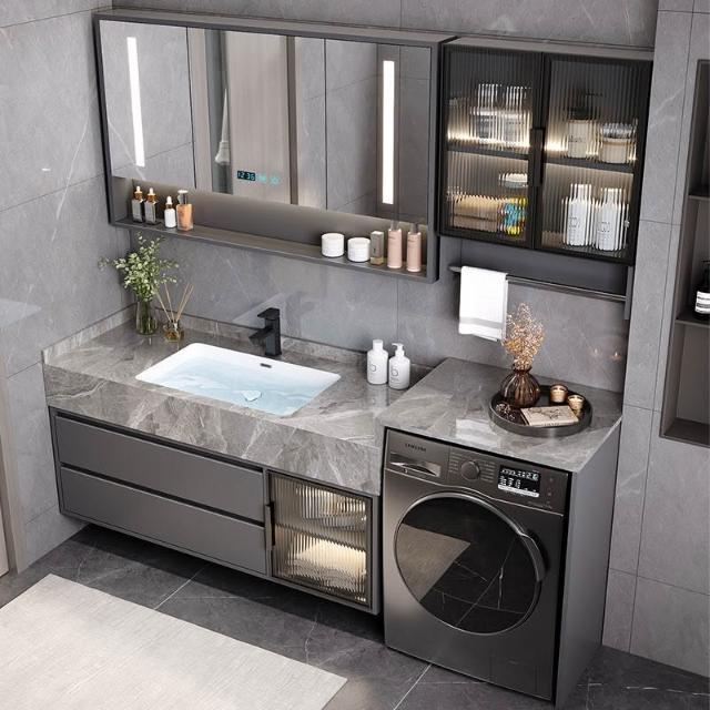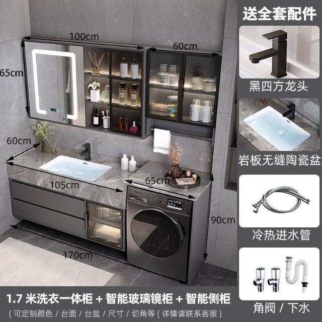 巖板無縫陶瓷盆浴室櫃組合洗衣機一體櫃衛生間洗臉盆洗手臺衛浴櫃 3