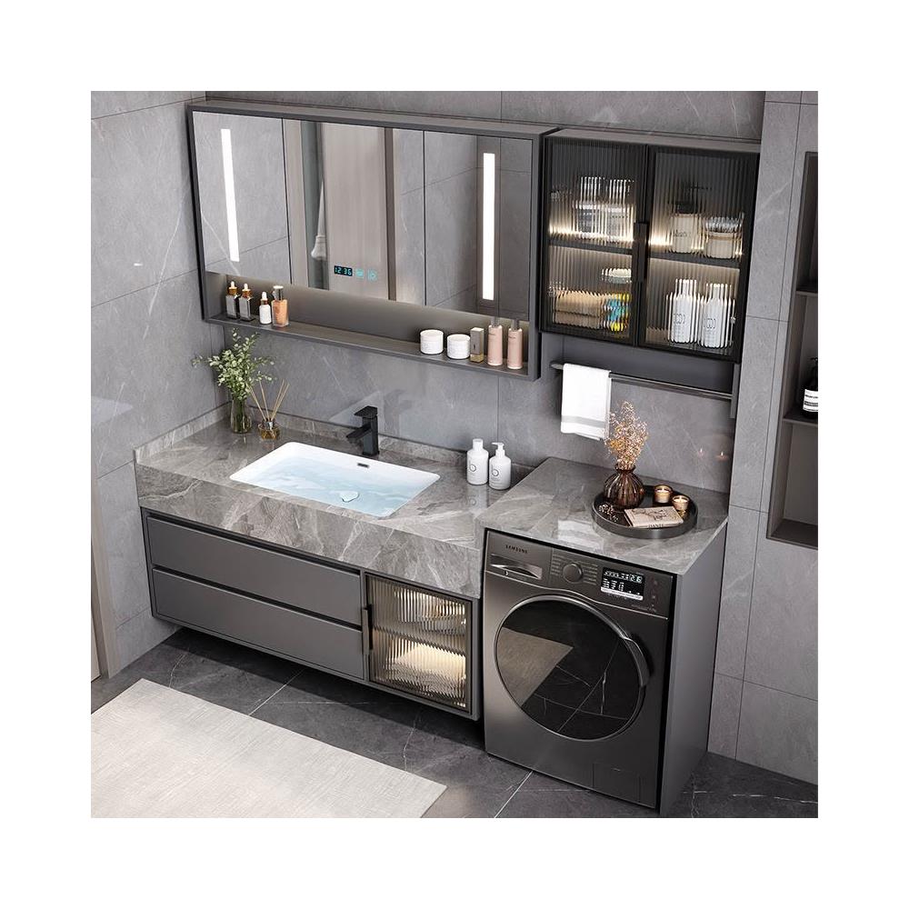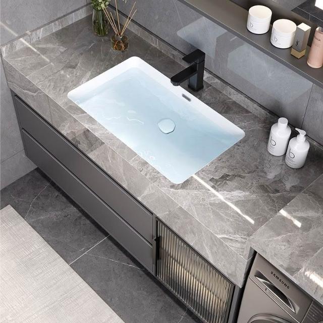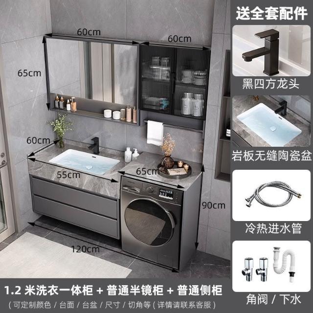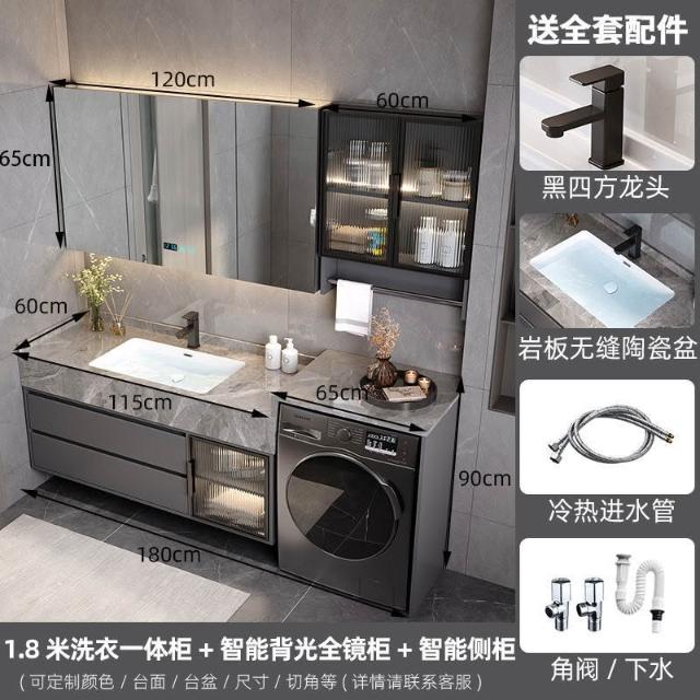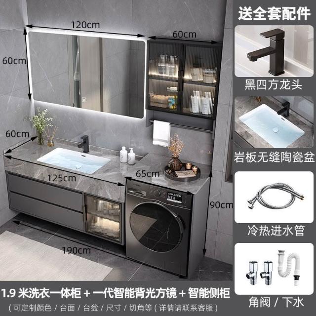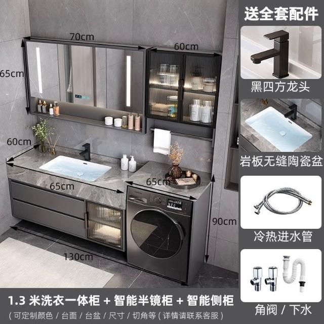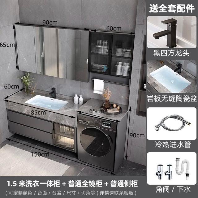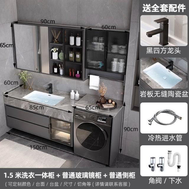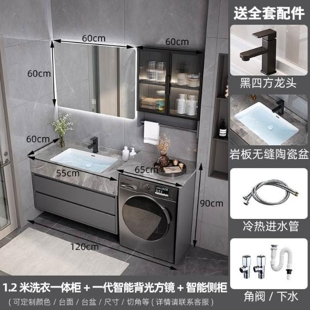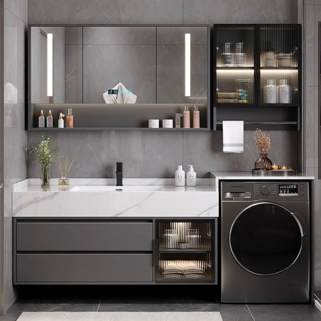 巖板無縫陶瓷盆浴室櫃組合洗衣機一體櫃衛生間洗臉盆洗手臺衛浴櫃 3