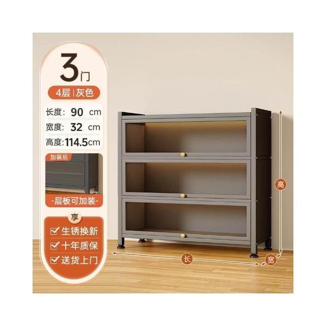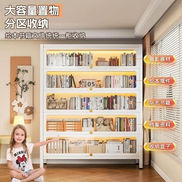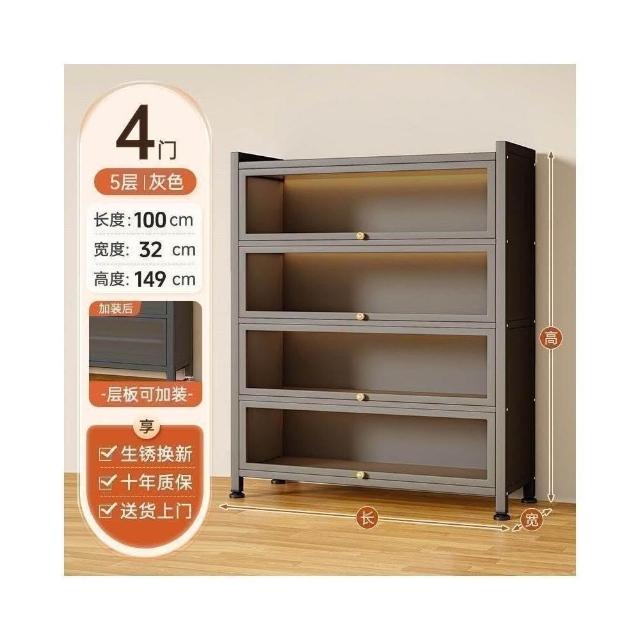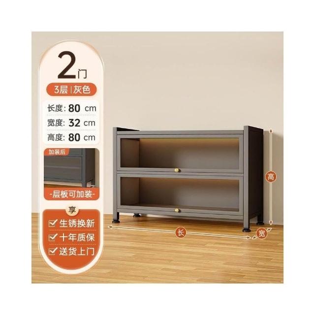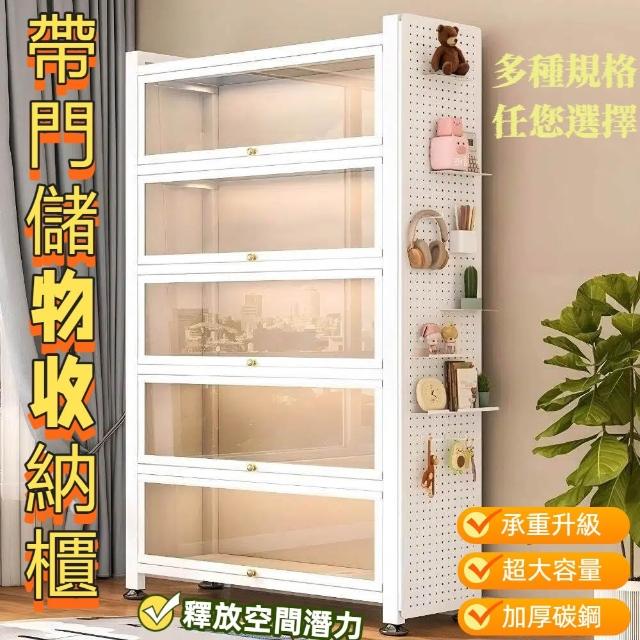 栖心家具 鋼製衣帽收納架 帶門玻璃 書櫃 落地防塵 鐵皮手辦 展示櫃 家用儲物櫃 收納櫃子 enc
