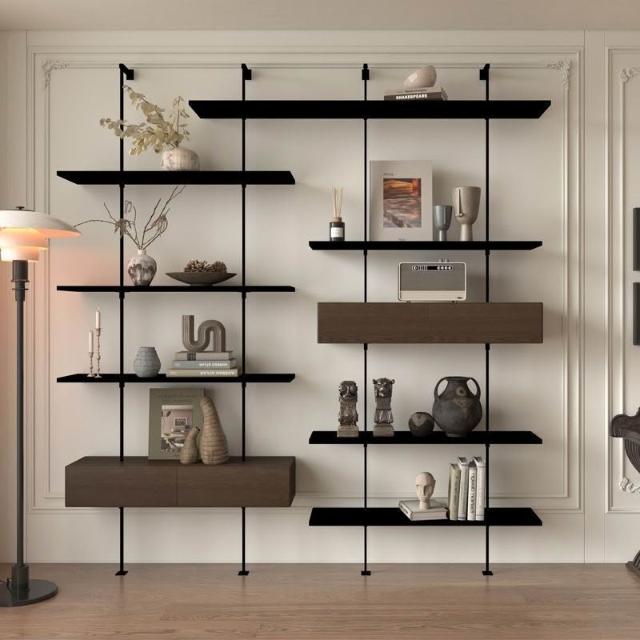 輕奢書架帶燈隔斷置物架客廳辦公室鞋店展示架開放式陳列架貨架木 3