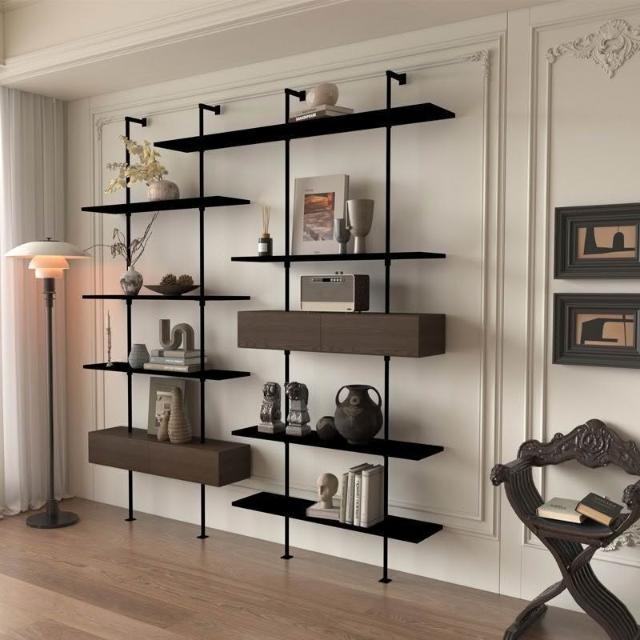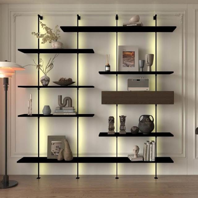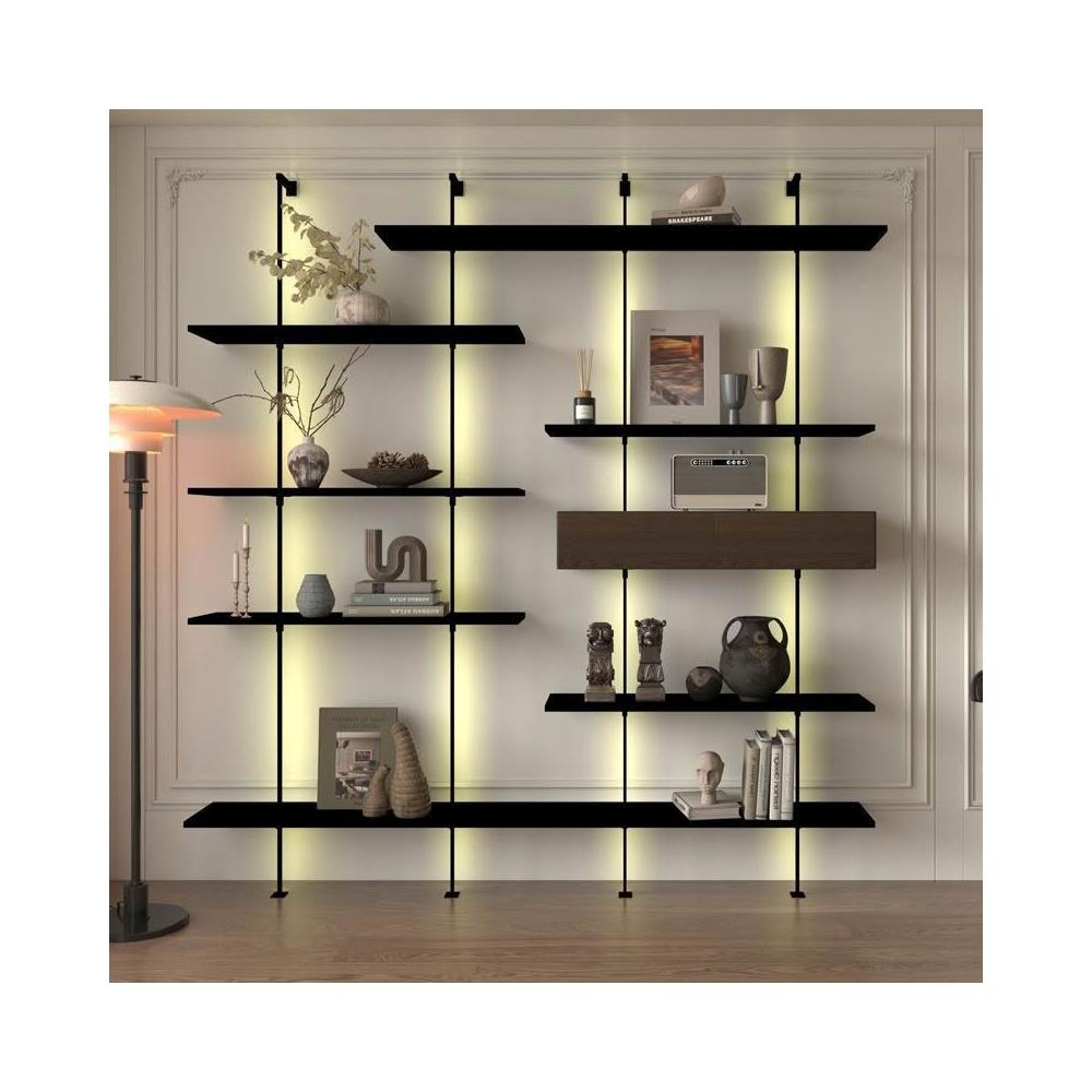 輕奢書架帶燈隔斷置物架客廳辦公室鞋店展示架開放式陳列架貨架木 3