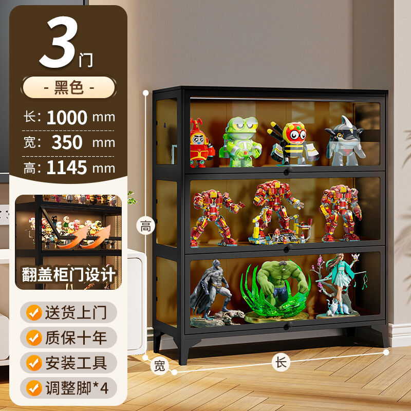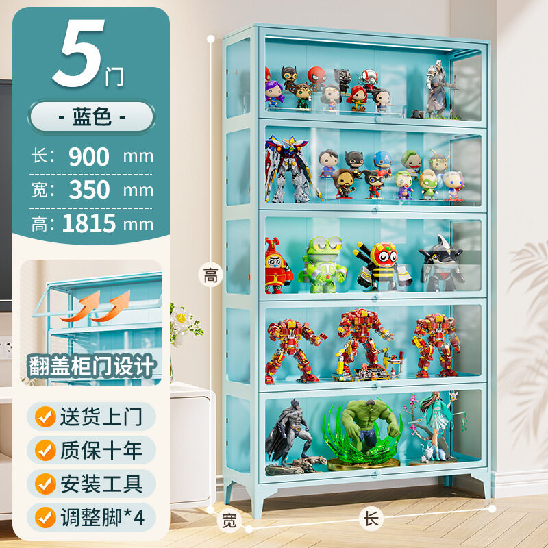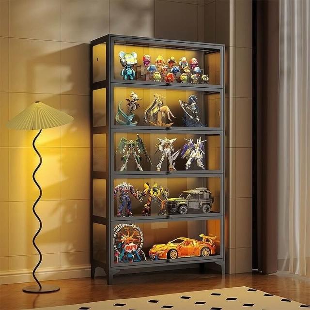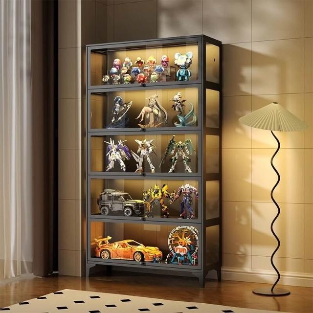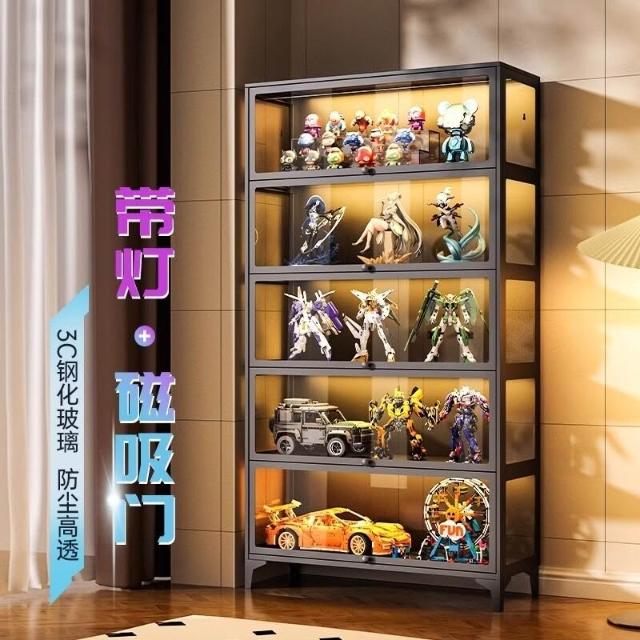 手辦櫃玻璃展示櫃痛櫃鋼製帶門書櫃防塵模型收納櫃樂高玩具儲物架 3