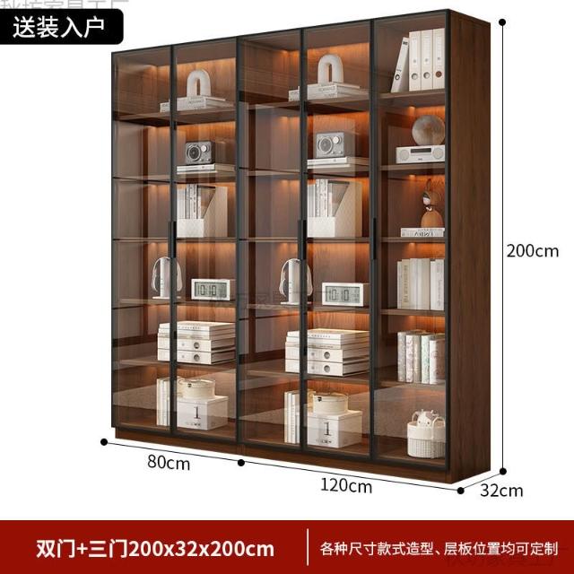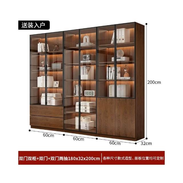 胡桃色書櫃玻璃門展示酒櫃輕奢家用客廳實木手辦一體整墻到頂書架 3