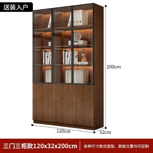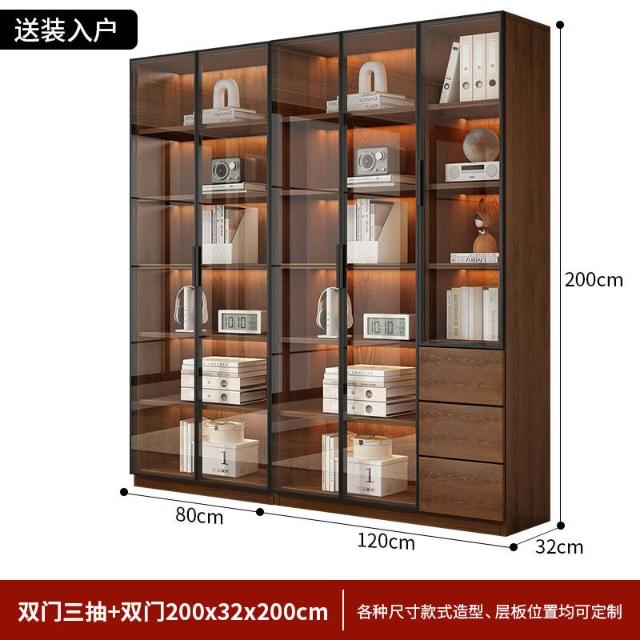 胡桃色書櫃玻璃門展示酒櫃輕奢家用客廳實木手辦一體整墻到頂書架 3