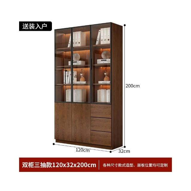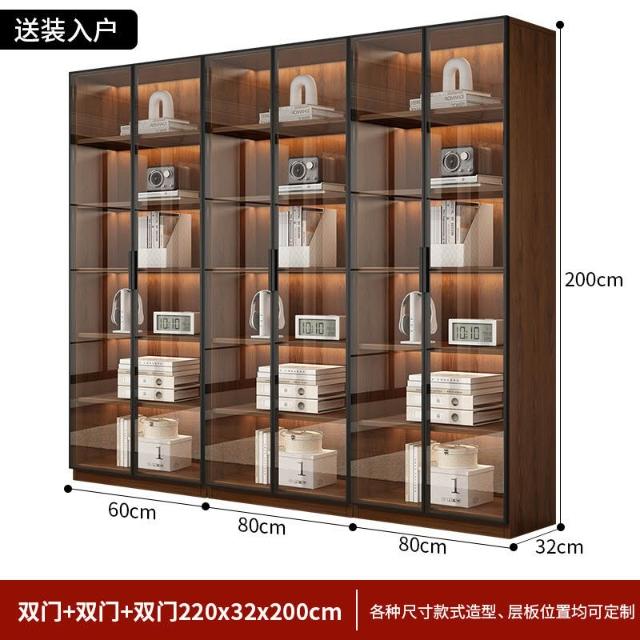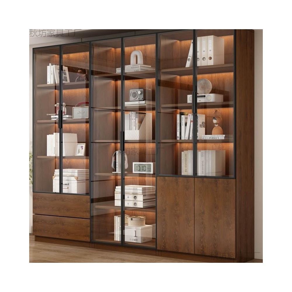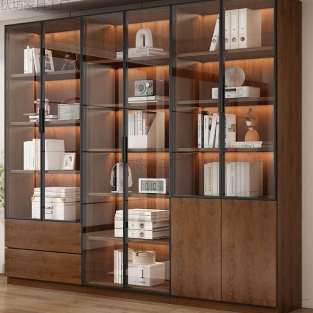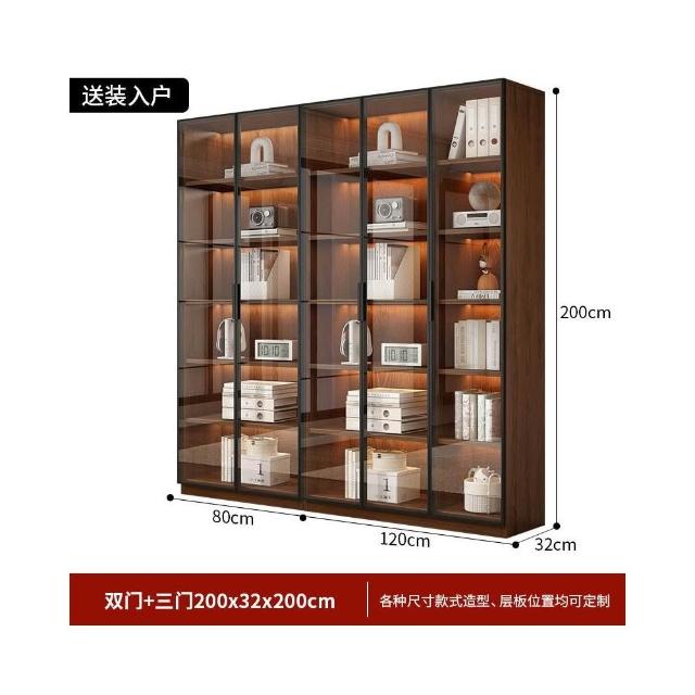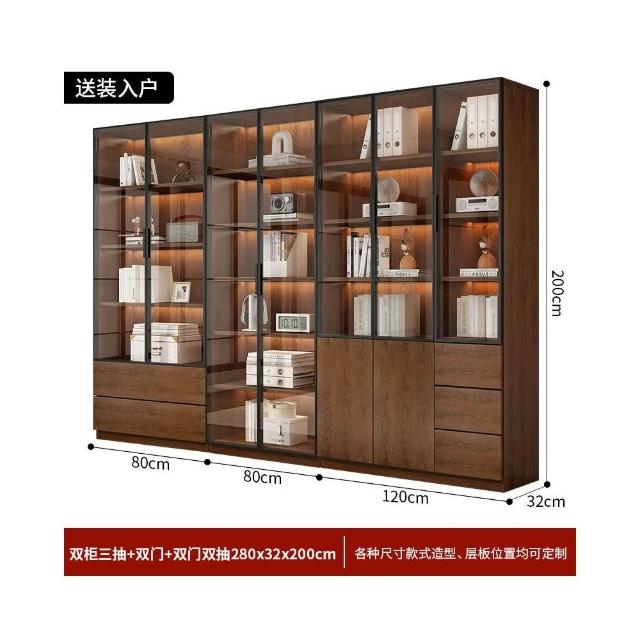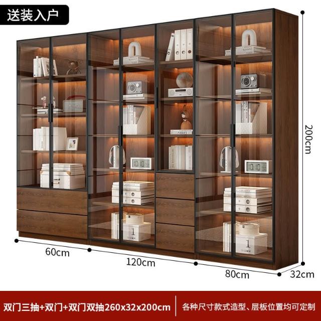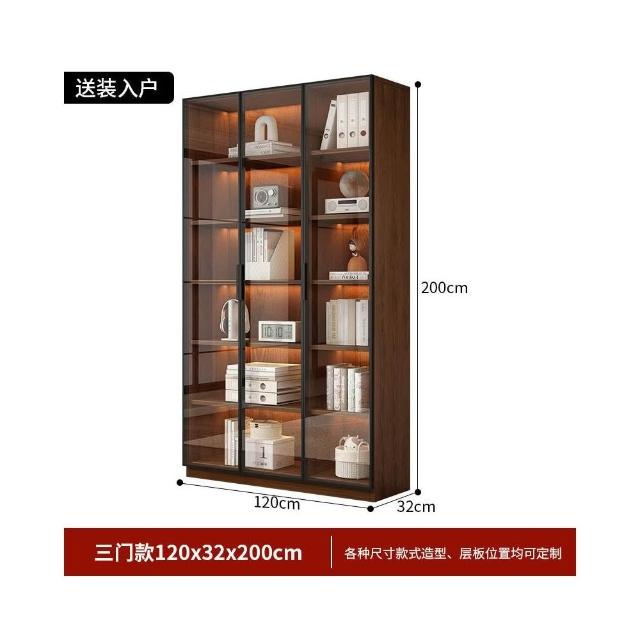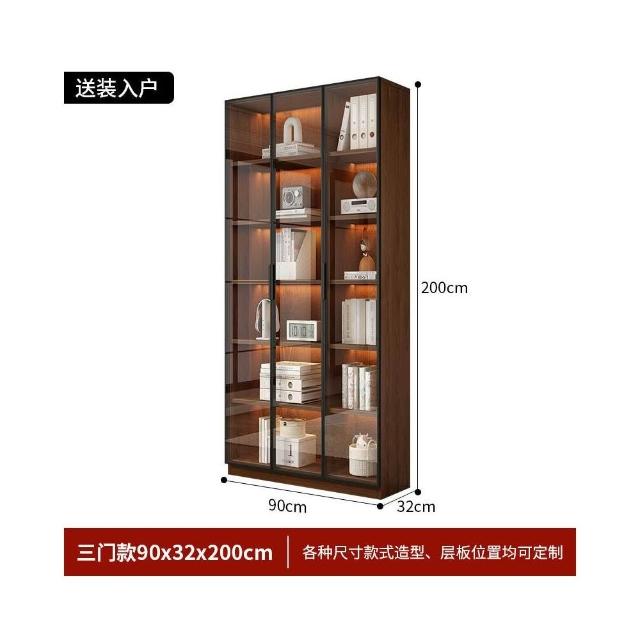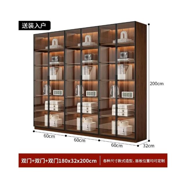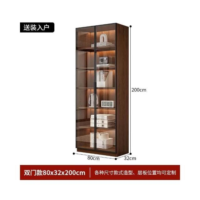 胡桃色書櫃玻璃門展示酒櫃輕奢家用客廳實木手辦一體整墻到頂書架 3