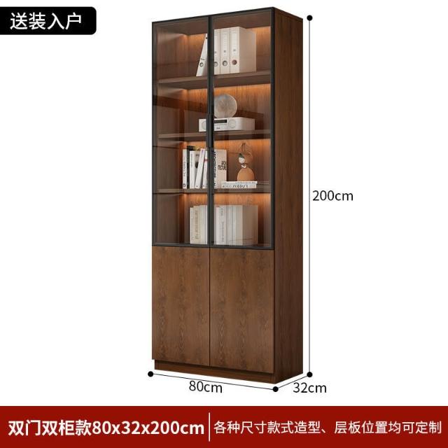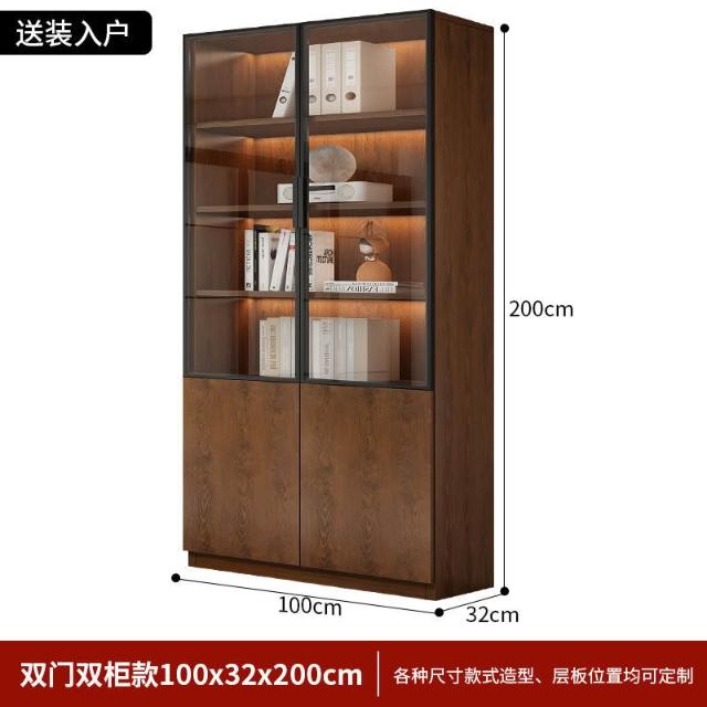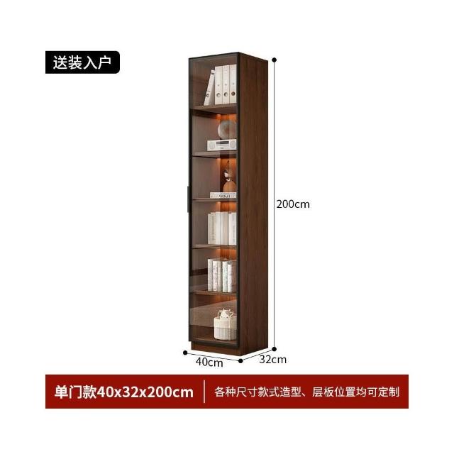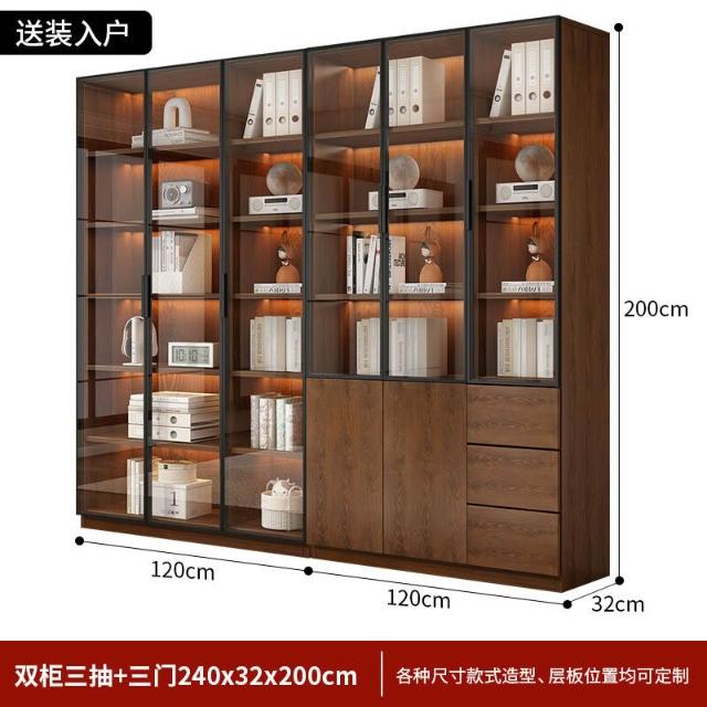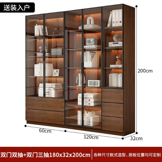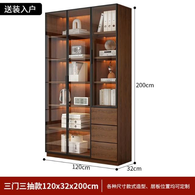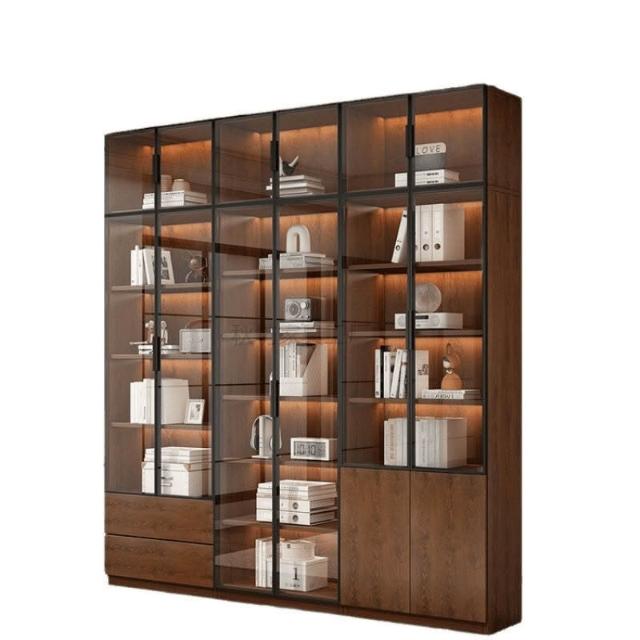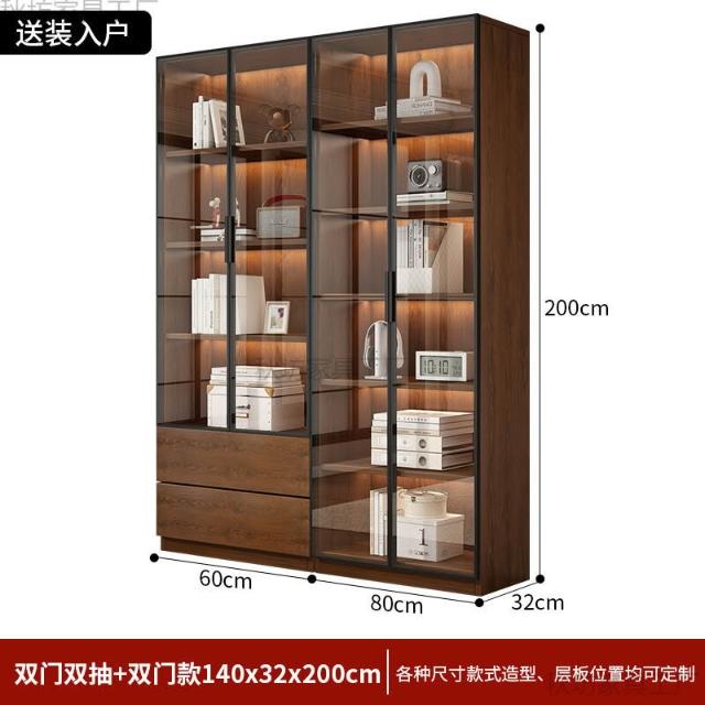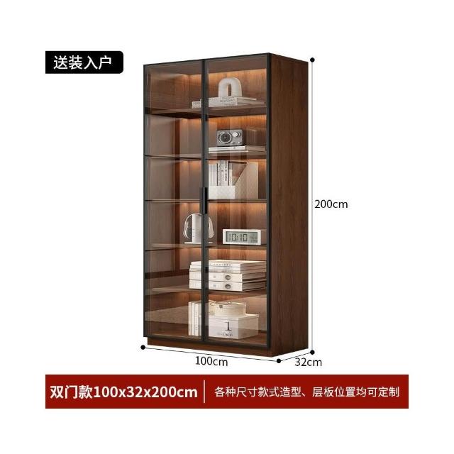 胡桃色書櫃玻璃門展示酒櫃輕奢家用客廳實木手辦一體整墻到頂書架 3