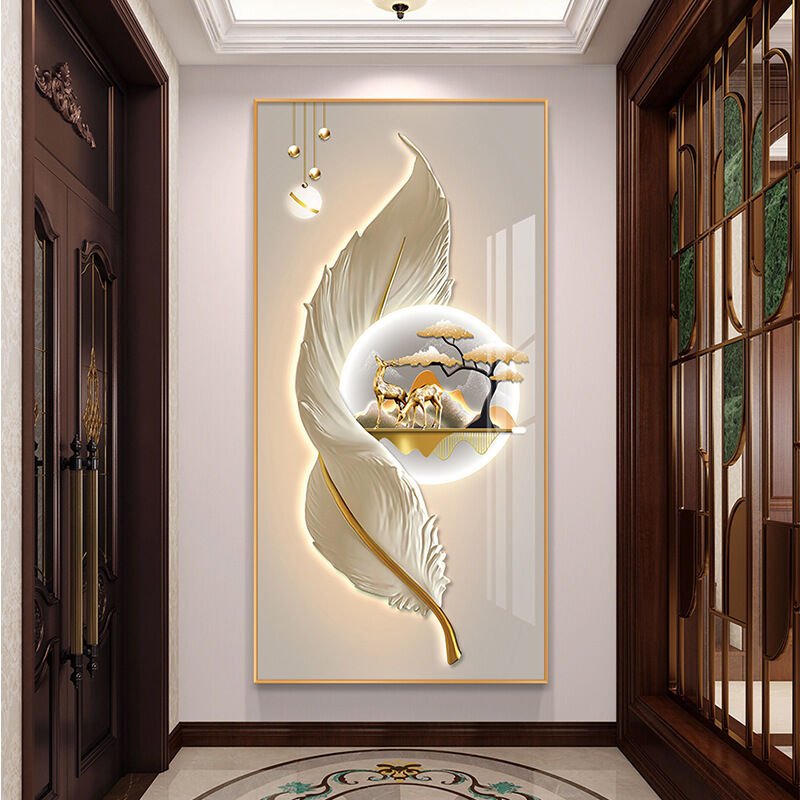 輕奢入戶玄關裝飾畫現代簡約高級感高檔墻壁畫走廊過道發財鹿掛畫 f6d
