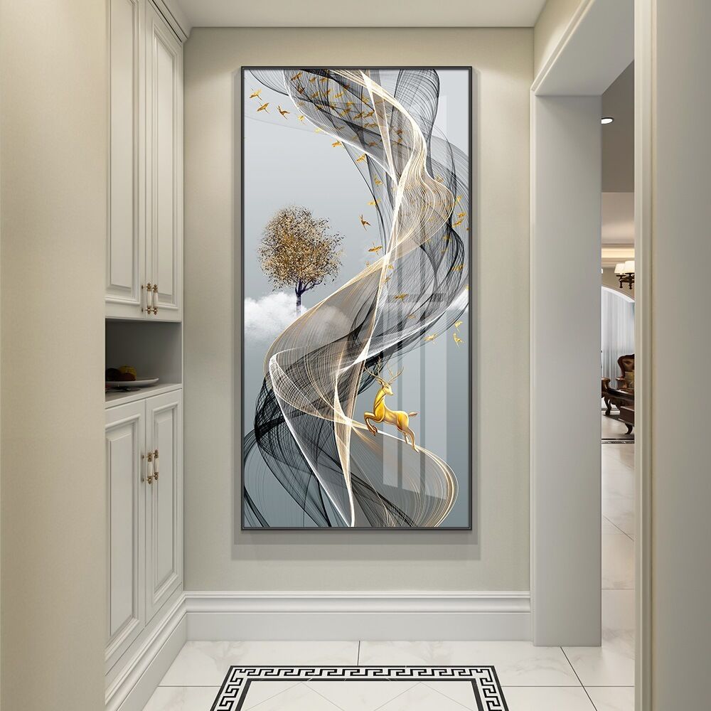 輕奢入戶玄關裝飾畫現代簡約高級感高檔墻壁畫走廊過道發財鹿掛畫 f6d