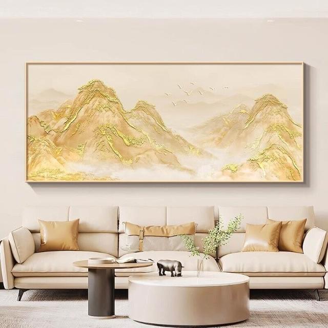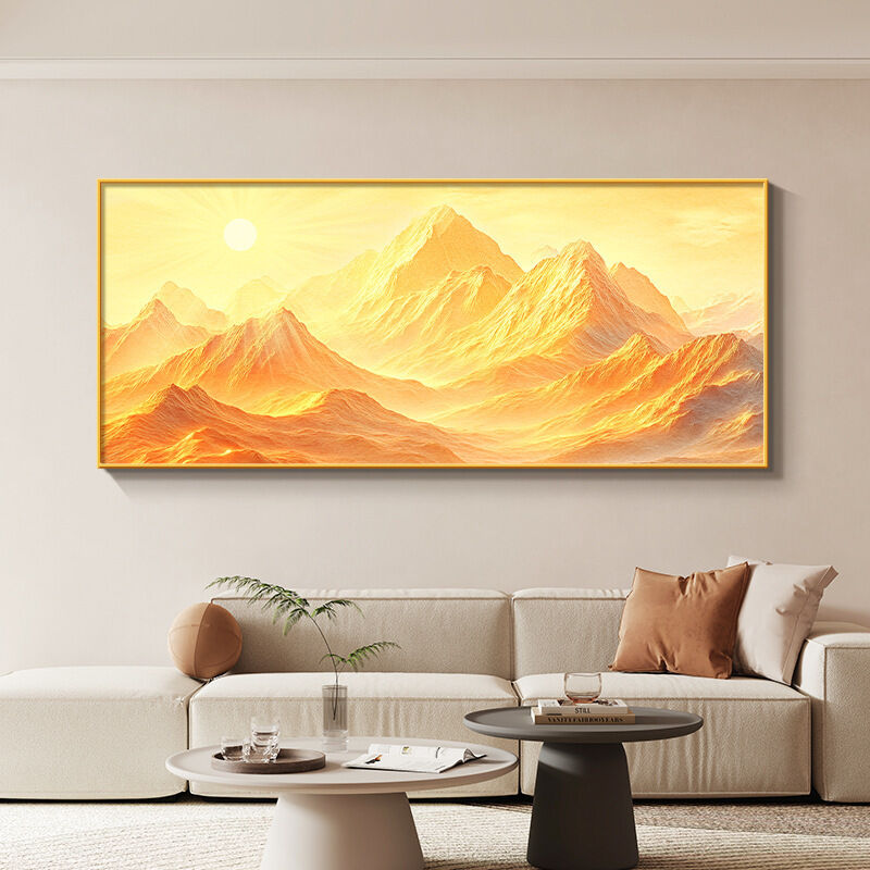 日照金山靠山水畫裝飾畫客廳辦公室沙發輕奢高級感背景墻壁畫掛畫 2f7