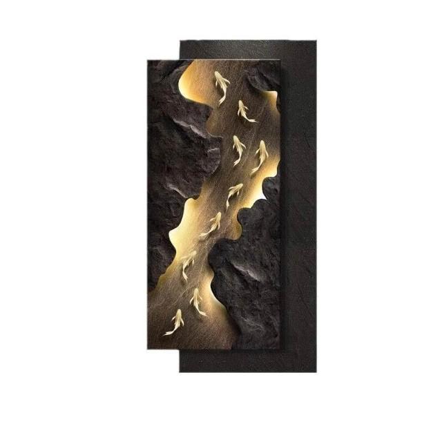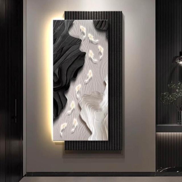 栖心家具🔥 現代輕奢玄關裝飾畫立體砂巖九魚寓意好掛畫入戶正對門壁燈畫 2b7