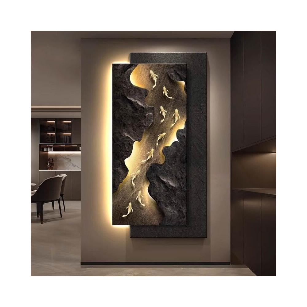 栖心家具🔥 現代輕奢玄關裝飾畫立體砂巖九魚寓意好掛畫入戶正對門壁燈畫 2b7