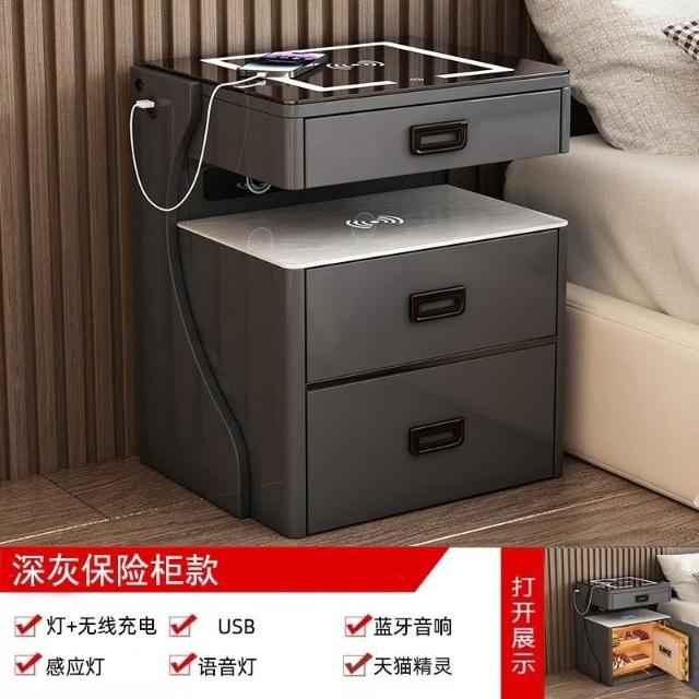 智能床頭櫃保險箱一體多功能無線充電保險櫃臥室床邊櫃收納櫃 8ea