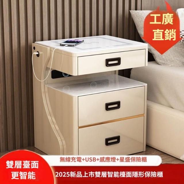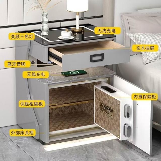 智能床頭櫃保險箱一體多功能無線充電保險櫃臥室床邊櫃收納櫃 8ea