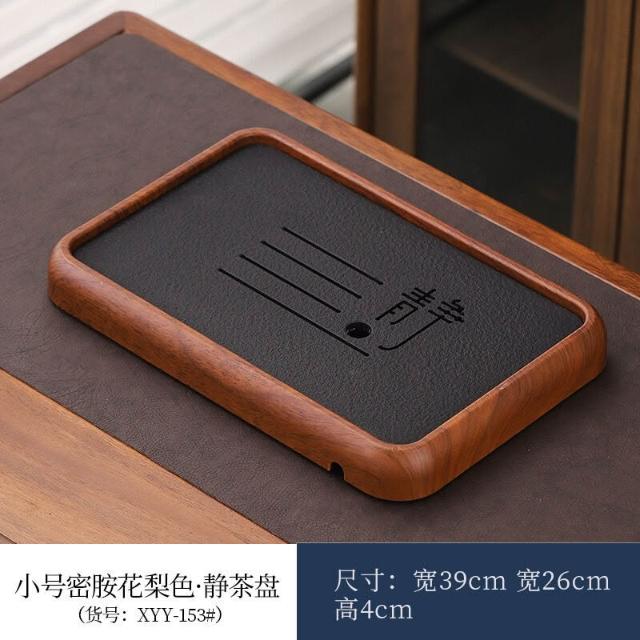 栖心 仿花梨木新款家用茶盤烏金石板幹泡盤蓄排瀝水茶托盤茶臺功夫茶具 14d
