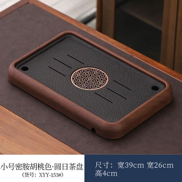 栖心 仿花梨木新款家用茶盤烏金石板幹泡盤蓄排瀝水茶托盤茶臺功夫茶具 14d