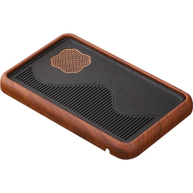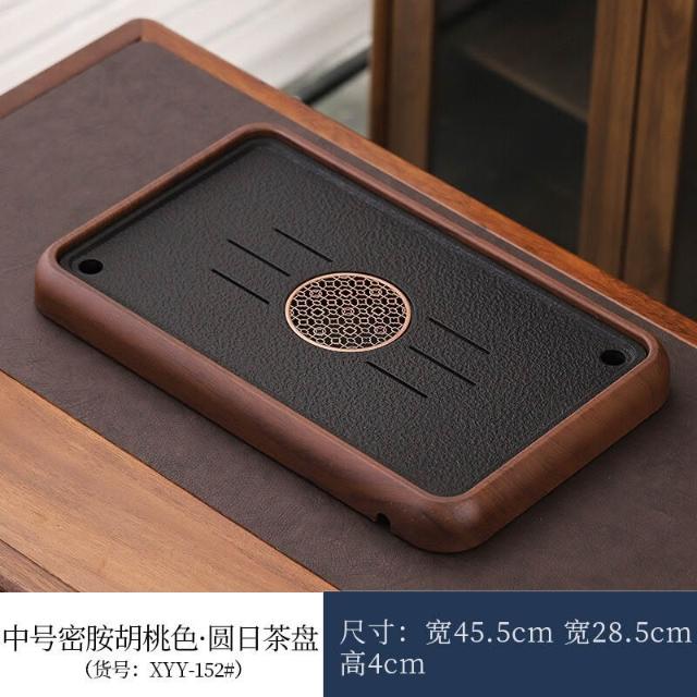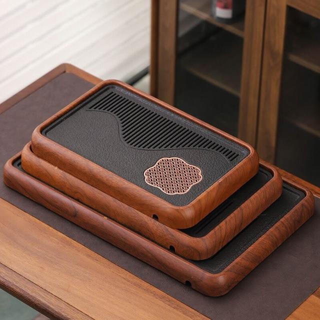 栖心 仿花梨木新款家用茶盤烏金石板幹泡盤蓄排瀝水茶托盤茶臺功夫茶具 14d