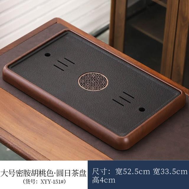 栖心 仿花梨木新款家用茶盤烏金石板幹泡盤蓄排瀝水茶托盤茶臺功夫茶具 14d