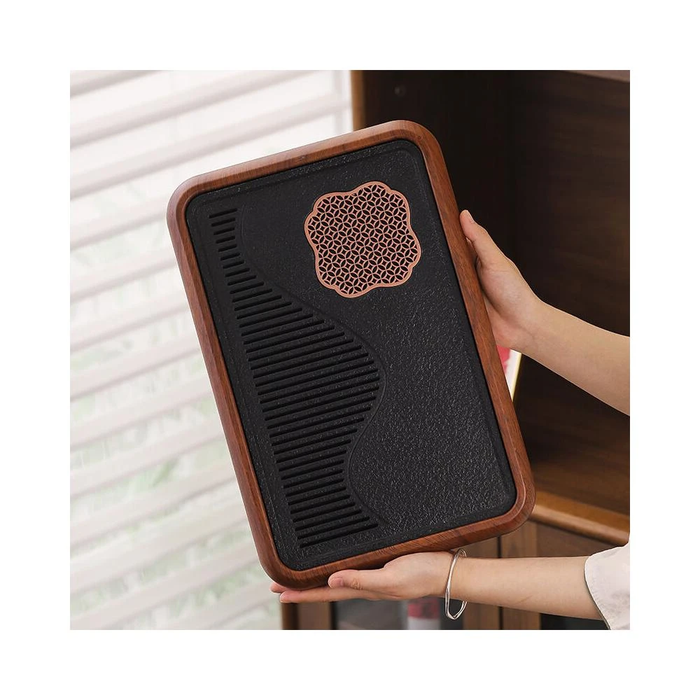 栖心 仿花梨木新款家用茶盤烏金石板幹泡盤蓄排瀝水茶托盤茶臺功夫茶具 14d