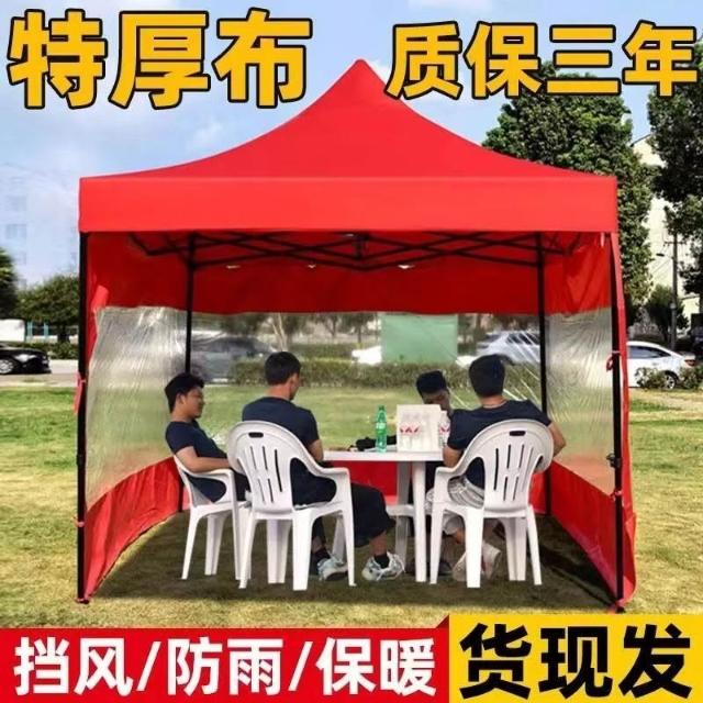 戶外擺攤用帳篷夜市冬天圍布四腳大傘防風折疊伸縮雨棚四角遮陽棚 0c4