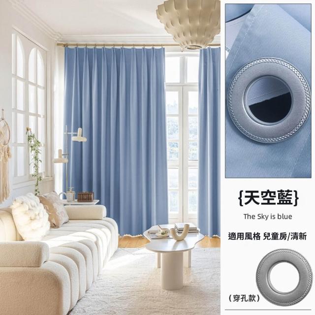全屋臥室客廳全遮光窗簾新款羅馬桿防曬遮陽布掛鉤現代簡約窗簾布 9cb