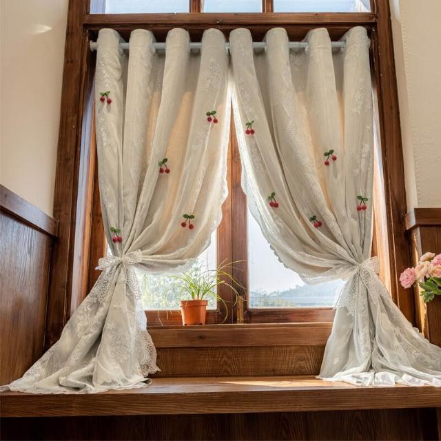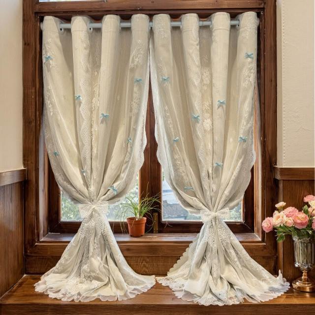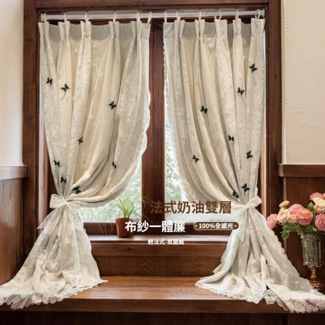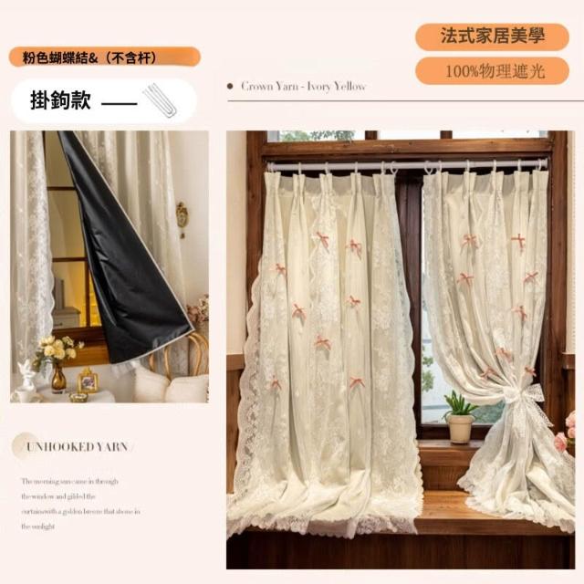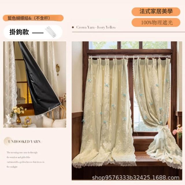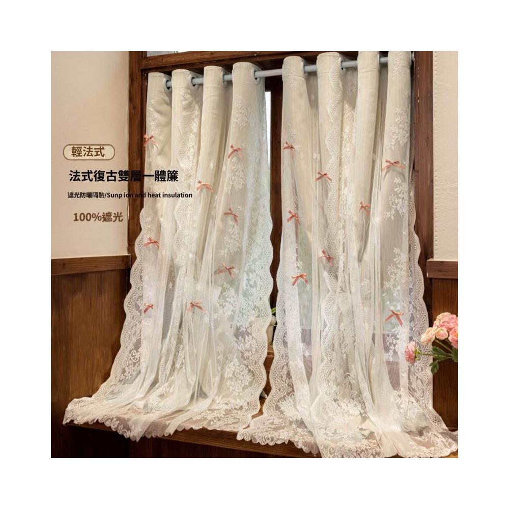 多巴胺法式全遮光窗簾田園風蕾絲雙層掛鉤打孔臥室飄窗出租屋簡易 508