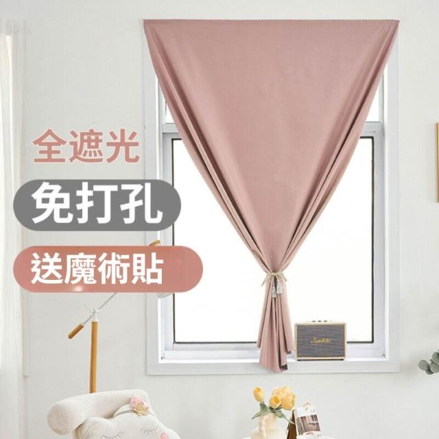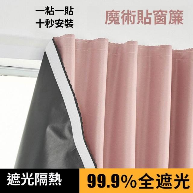 全遮光窗簾免打孔魔術貼出租屋隔斷簾臥室飄窗自粘小窗戶遮擋短簾 490