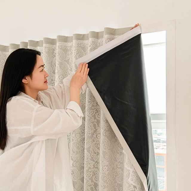 全遮光窗簾出租屋臥室飄窗魔術貼免打孔安裝自粘式遮擋小窗戶短簾 cf0