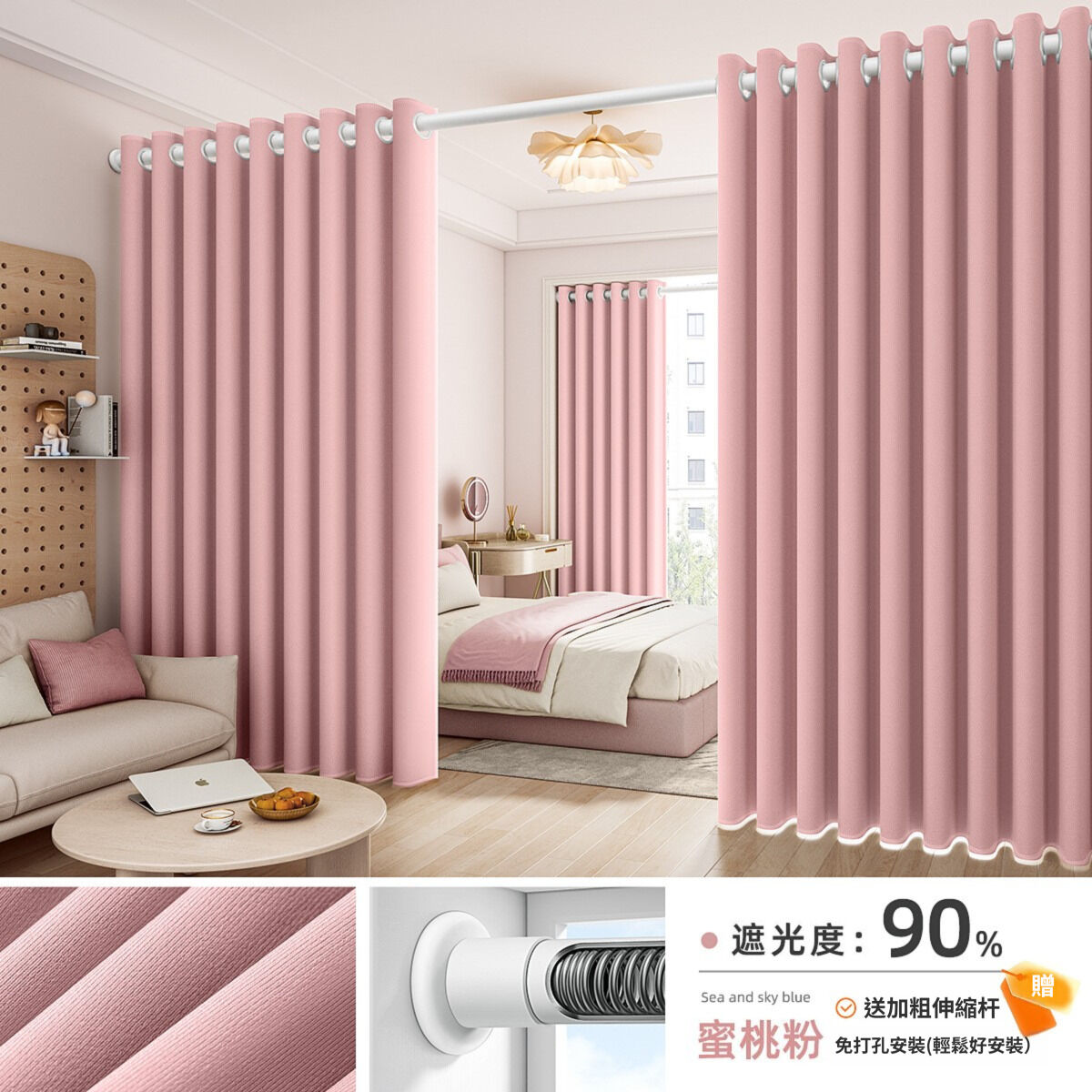 臥室窗簾免打孔全遮光2025新款客廳防曬隔熱遮陽安裝高級布掛鉤式 0a3