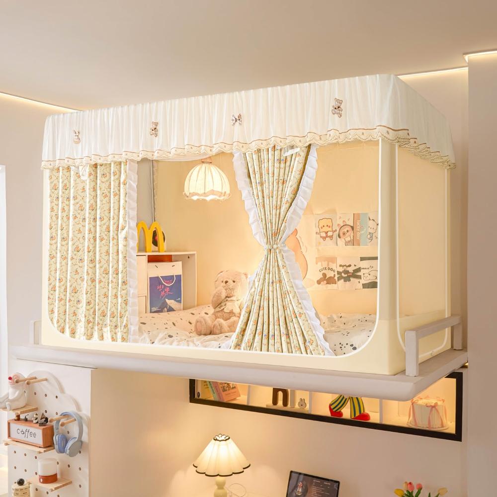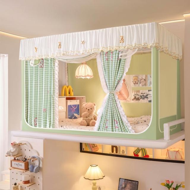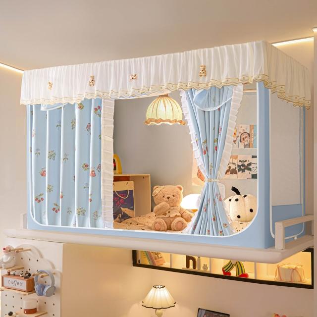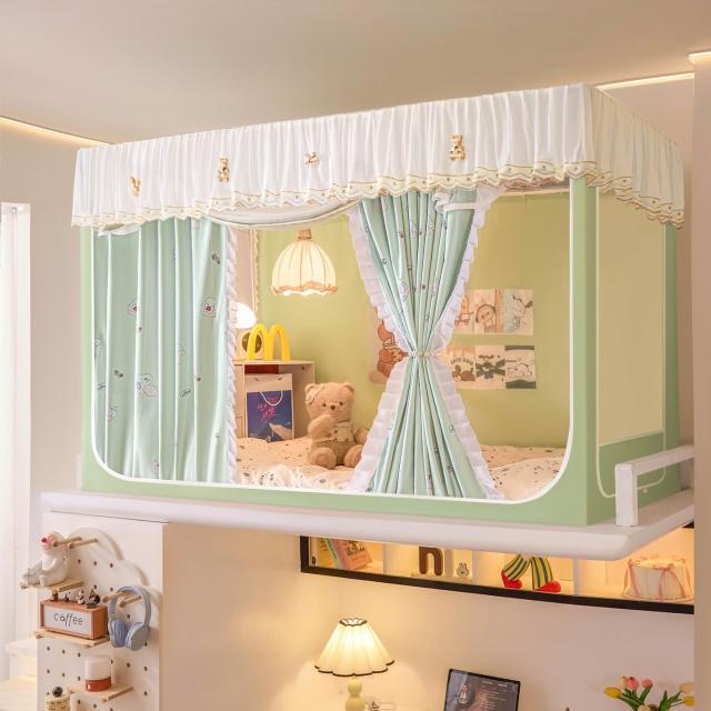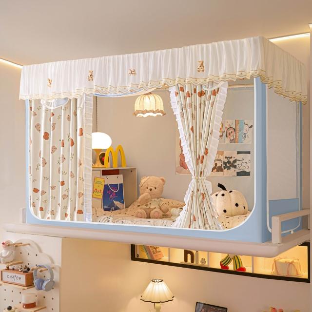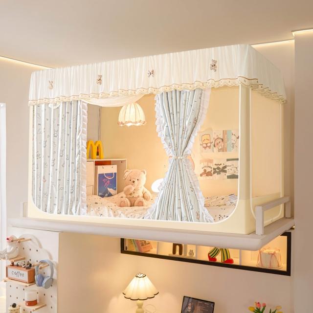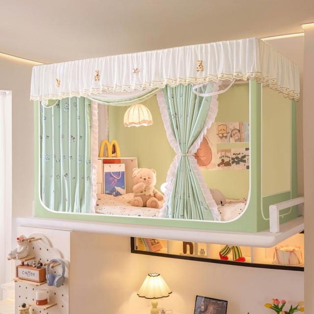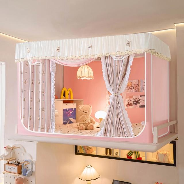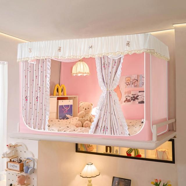 全遮光蚊帳學生宿舍蚊帳三開門蚊帳水溶花邊上下鋪卡通少女風床簾 80a